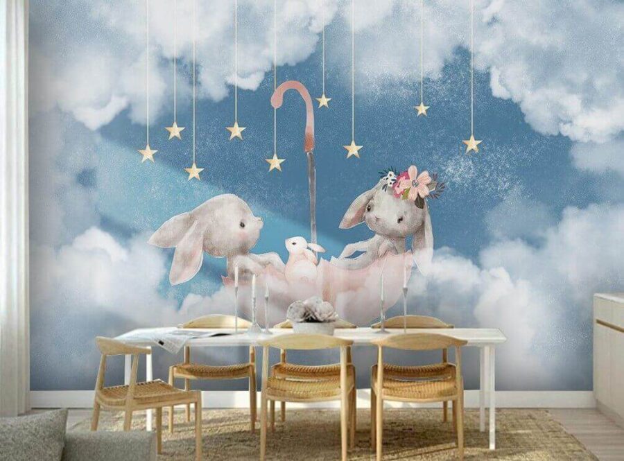 Transformez votre espace grâce au charme ravissant de « Deux lapins sous un parapluie rose ». Cette fresque murale envoûtante apporte une touche fantaisiste et ludique à n’importe quelle pièce, avec ses adorables lapins flottant dans des nuages oniriques, reliés par un parapluie rose vif. Elle donne l’impression d’une douce étreinte pour vos murs, parfaite pour égayer une chambre d’enfant, une salle de jeux ou même un coin lecture confortable. Imaginez-vous en train de siroter un thé avec cette fresque en toile de fond : qui ne sourirait pas ? C’est comme un petit bout de magie qui suscite la joie. Les couleurs douces et les détails charmants invitent à la rêverie et aux rires, faisant de chaque regard une mini-évasion.