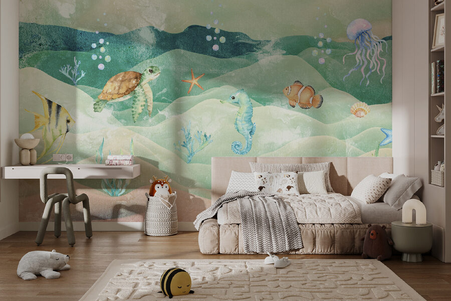Imaginez que vous vous réveillez chaque jour devant une scène sous-marine sereine grâce à cette peinture murale “Aquarelle d’une tortue en train de nager”. Parfait pour toute pièce nécessitant une touche de fantaisie et d’émerveillement – chambres d’enfants, aires de jeux, ou tout autre endroit souhaitant une ambiance joyeuse. Imaginez une tortue glissant parmi des poissons vibrants et de douces créatures marines, apportant un éclat de vie à votre mur. Cette peinture murale n’est pas seulement un décor, c’est une porte vers des aventures sous-marines. Sentez le calme vous envahir grâce aux douces teintes de l’aquarelle… c’est comme plonger dans un rêve éveillé ! Le plus beau ? Les enfants l’adorent ! Il stimule l’imagination, transformant n’importe quel espace en un monde sous-marin magique. Ce n’est pas seulement joli, c’est aussi un océan de plaisir sur votre mur ! Alors, plongez, vos murs vous remercieront.