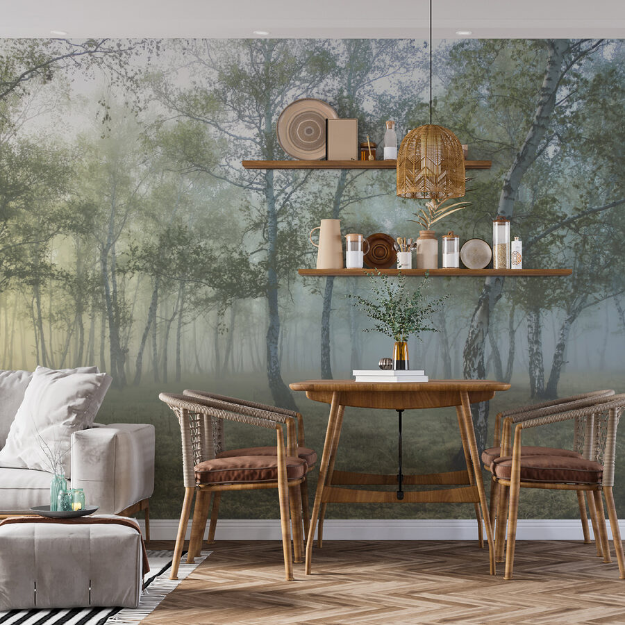 Imaginez un peu : vous entrez dans une pièce et la voilà – une forêt sereine, avec cette lueur matinale parfaite et brumeuse tout droit sortie d’un rêve. Bienvenue au “lever de soleil brumeux dans une forêt paisible”. C’est comme si vous entriez dans votre propre retraite forestière privée ! Imaginez que vous commenciez votre journée avec une tasse de café, en contemplant cette peinture murale et en sentant le calme vous envahir.