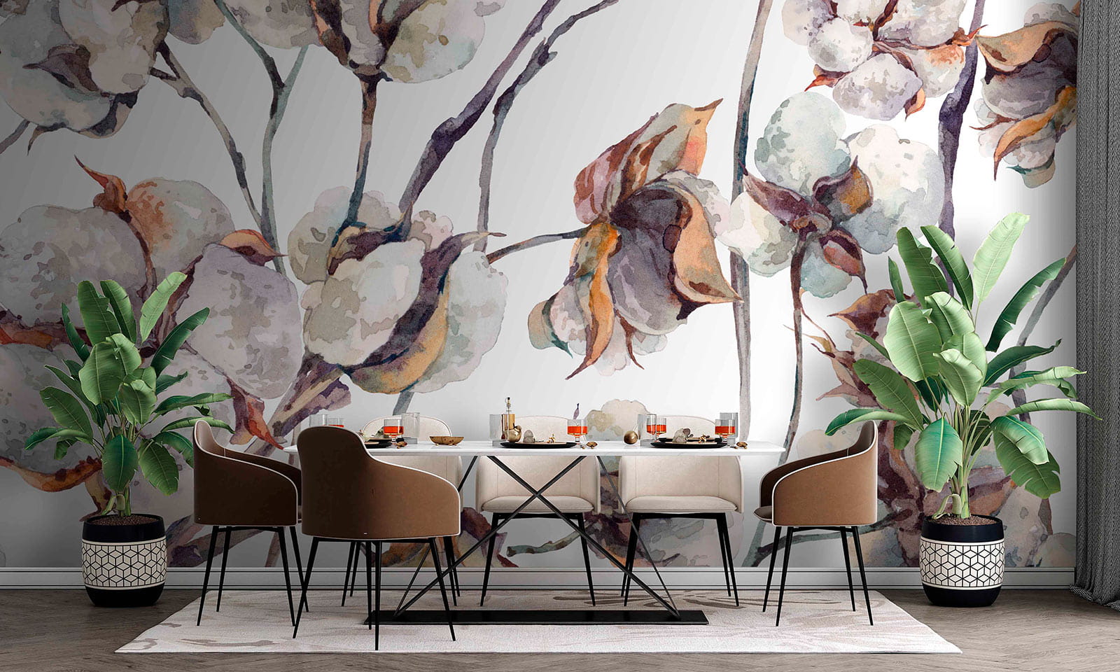 Transformez votre espace avec cette délicieuse peinture murale représentant des fleurs de coton. Imaginez que vous pénétrez dans une pièce confortable où l’on sent comme une bouffée d’air frais ! Ces fleurs délicates ont le don d’adoucir l’atmosphère et de rendre les journées les plus difficiles un peu plus légères. De plus, le coton a quelque chose de merveilleusement nostalgique, comme des souvenirs de journées ensoleillées et de douces brises.