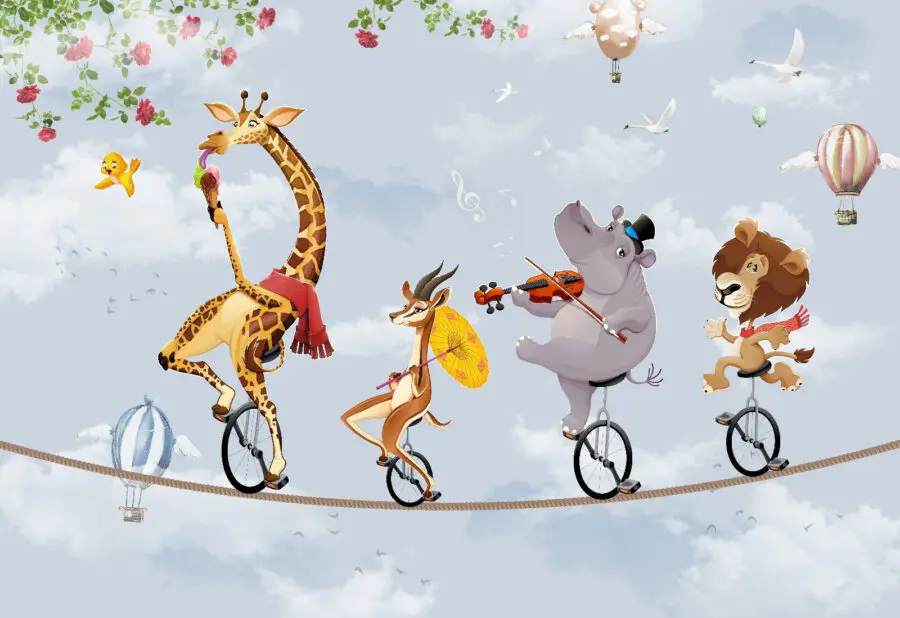 Transformez l’espace de votre enfant avec cette charmante peinture murale représentant un hippopotame qui chante la sérénade avec son violon ! Imaginez la joie de voir une girafe et un lion, tous deux sur des monocycles, se joindre à la fête. C’est une scène fantaisiste qui stimule l’imagination et le rire. Idéale pour les chambres ou les aires de jeux, cette peinture murale peut facilement égayer n’importe quel mur terne, en lui donnant une touche de caractère. Imaginez des enfants qui gloussent en se lançant chaque jour dans une aventure. Qui n’aurait pas envie de se réveiller dans ce joyeux chaos ? C’est une touche parfaite pour inspirer la créativité et la joie !