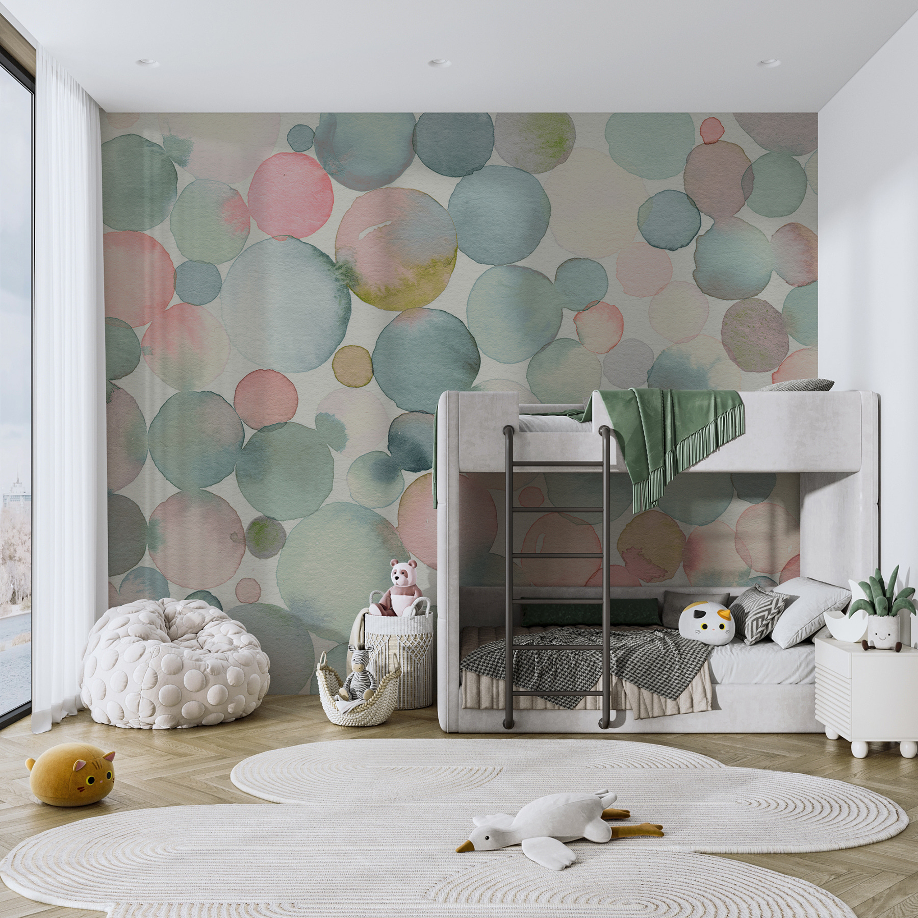 Imaginez : Votre bébé s’endort et ces cercles tranquilles dansent dans ses rêves. Le simple fait de le regarder donne l’impression de respirer profondément – c’est super apaisant et tellement adorable ! Et honnêtement, qui ne voudrait pas d’un peu de magie aquarelle sur ses murs ? C’est une douce étreinte pour vos sens, plus qu’une simple peinture murale… c’est comme apporter un morceau de sérénité artistique dans la vie de tous les jours. Parfait pour ceux qui chérissent la simplicité avec une pincée d’enchantement. 🌸