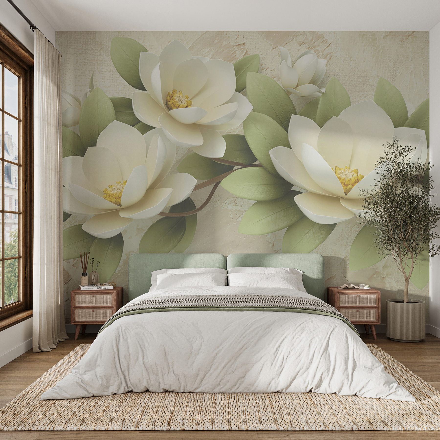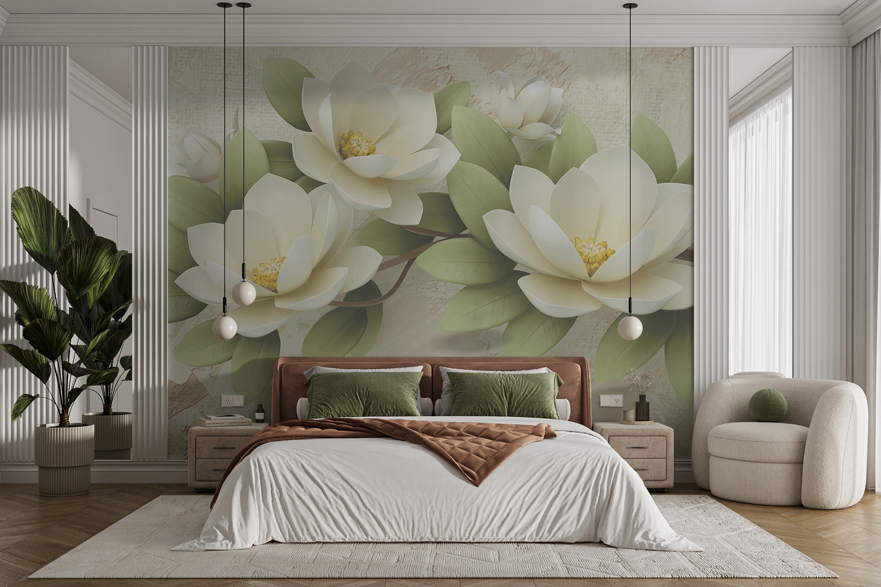Wow, regardez ces fleurs ! La peinture murale “Fleurs élégantes avec feuilles vertes”, c’est comme si vous aviez un morceau de sérénité dans votre chambre. Imaginez que vous vous réveillez tous les matins avec ces grandes fleurs crémeuses – c’est très rafraîchissant, n’est-ce pas ? C’est comme si vous apportiez le charme d’un jardin de printemps à l’intérieur sans aucun entretien. Parfait pour ceux qui aiment une touche de nature mais n’ont pas vraiment la main verte.