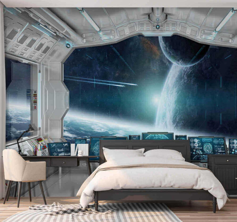 Imaginez que vous entrez dans votre chambre et que vous avez l’impression d’être aux commandes d’un vaisseau spatial – ça a l’air cool, non ? C’est exactement ce que fait cette peinture murale. C’est comme un portail vers un autre univers, avec des commandes futuristes et une vue imprenable sur l’espace ! Parfait pour rêver en grand et vivre des aventures imaginaires – les enfants et les adultes au cœur jeune vont l’adorer. Ce n’est pas seulement une peinture murale, c’est une expérience. L’installer dans votre espace le transforme instantanément en un pays des merveilles de la science-fiction. Pouvez-vous imaginer prendre votre café du matin avec une vue sur des galaxies lointaines ? C’est un bon début de journée ! 🚀✨