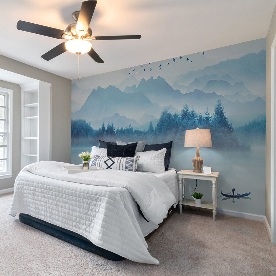 Ce qui est encore plus cool ? Les montagnes brumeuses à l’arrière-plan donnent une impression de rêve, presque de magie. On peut presque sentir l’odeur des pins et entendre le battement d’ailes silencieux. L’endroit idéal pour une tasse de café le matin ou des pensées profondes le soir, n’est-ce pas ? De plus, il est polyvalent : ce n’est pas pour rien qu’il fait partie de la catégorie des “Peintures murales populaires”. Tout le monde semble aimer la tranquillité qu’il apporte.