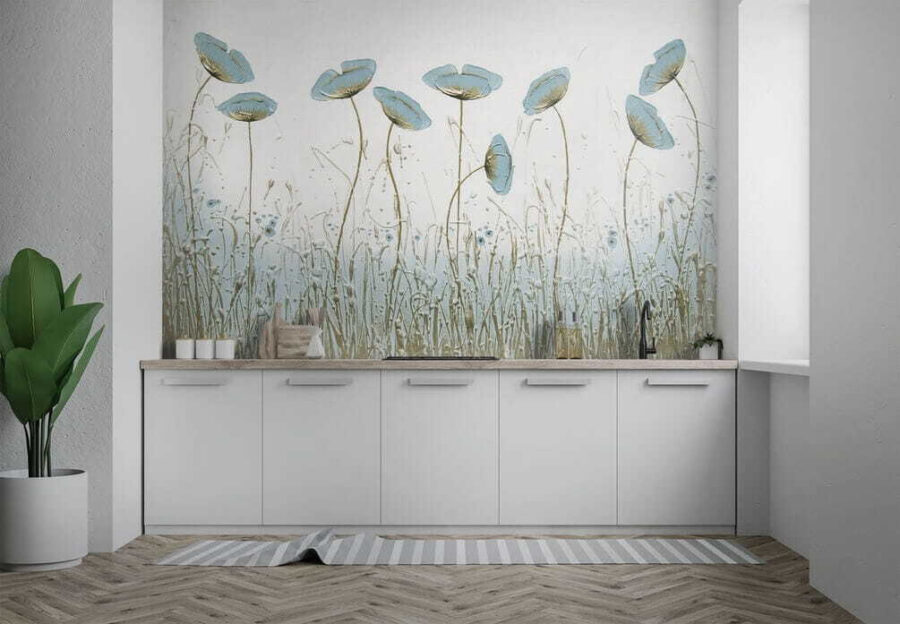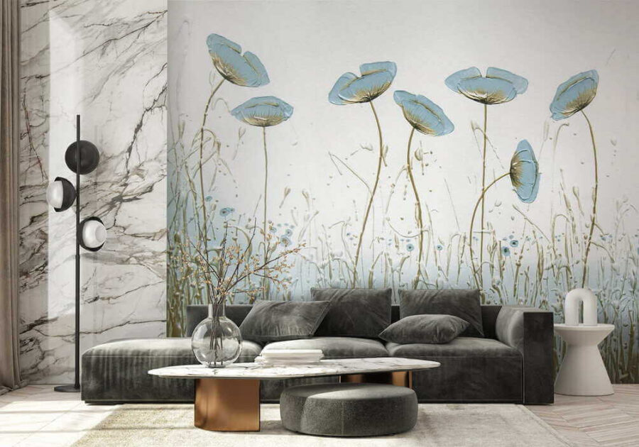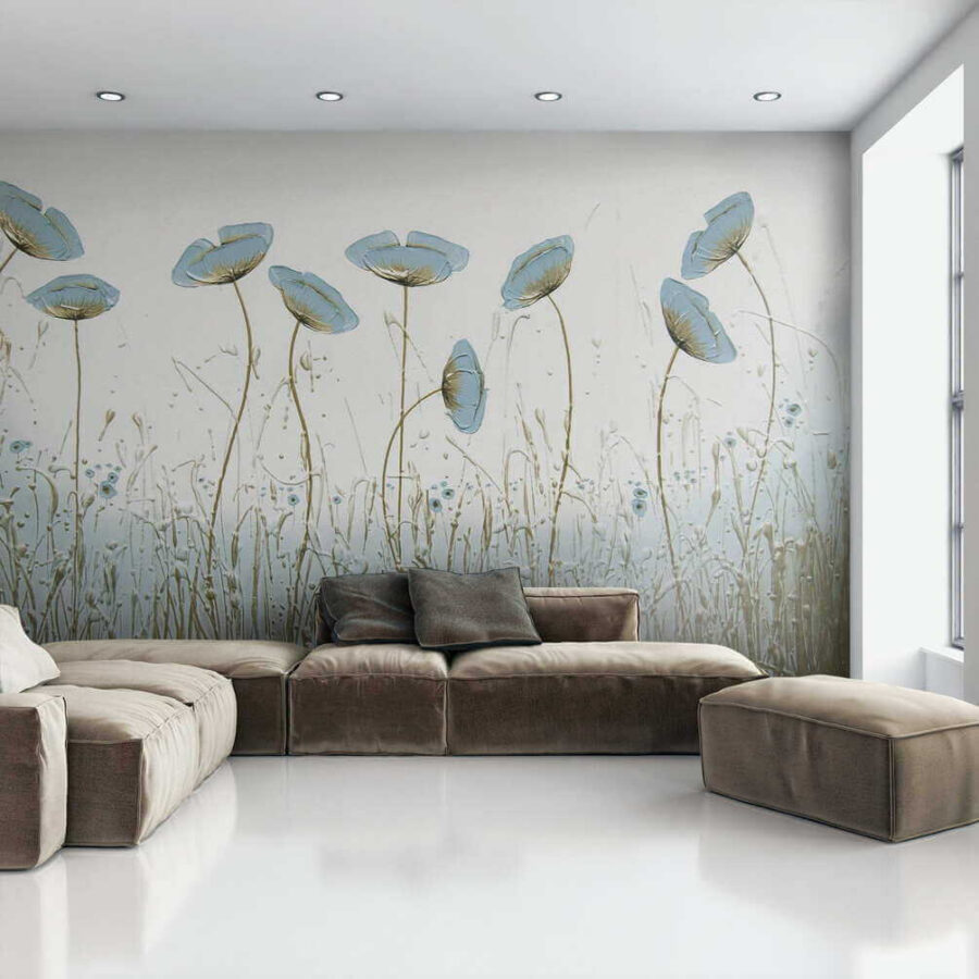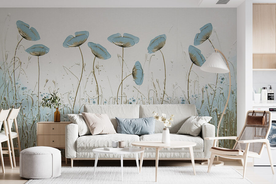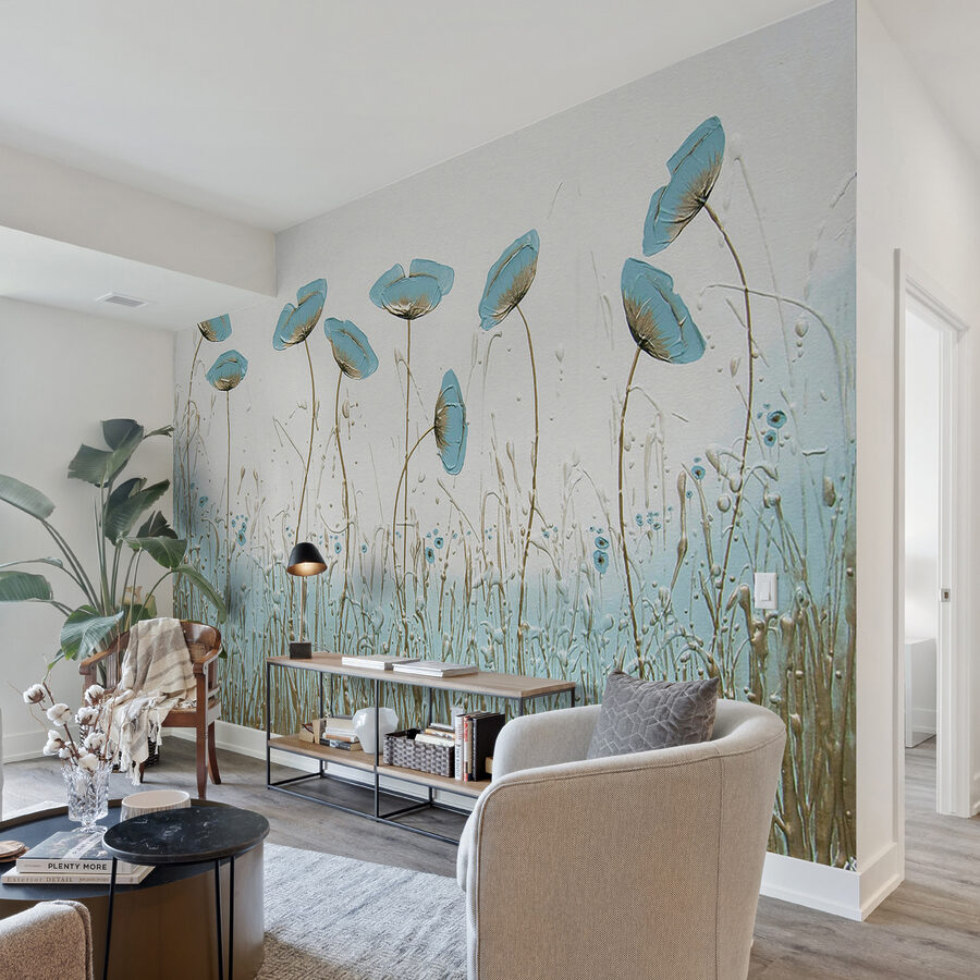 Vous avez toujours voulu apporter une touche de nature à l’intérieur ? Cette superbe peinture murale pourrait bien être votre réponse. Imaginez des fleurs bleues délicates qui se balancent doucement, comme si elles sentaient une brise légère les effleurer. C’est immédiatement apaisant, n’est-ce pas ?