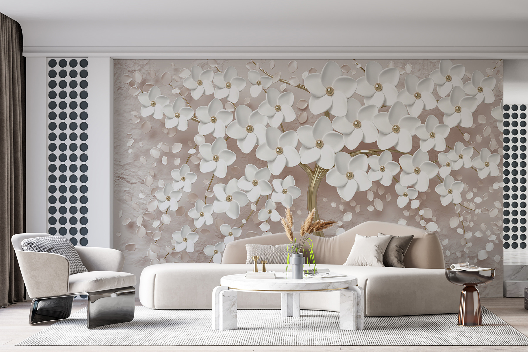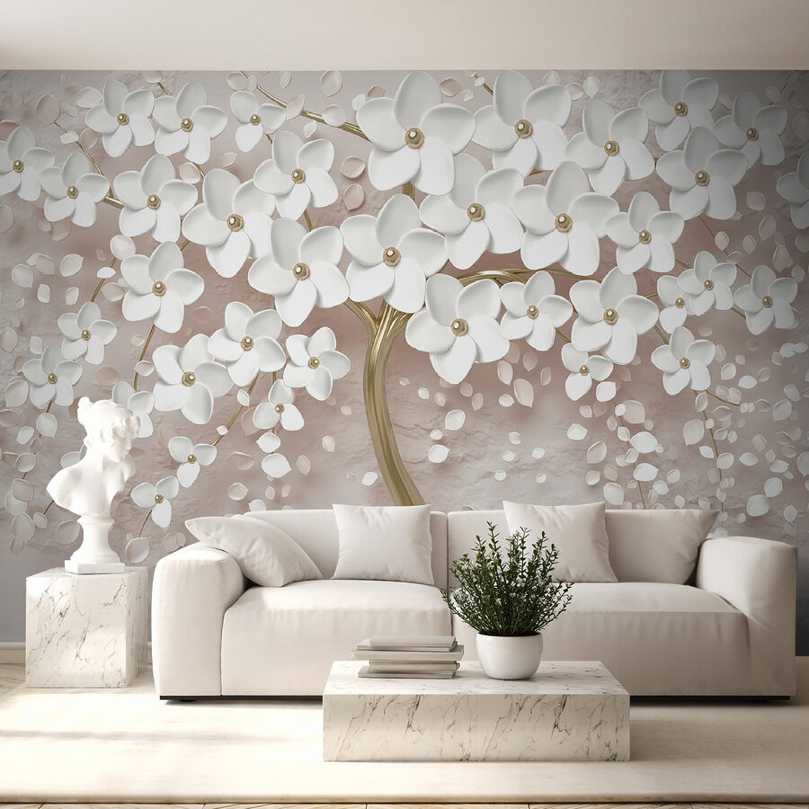 Papier peint Papier peint Des fleurs élégantes tombent en cascade sur des branches tourbillonnantes (UGS: u37065v3)