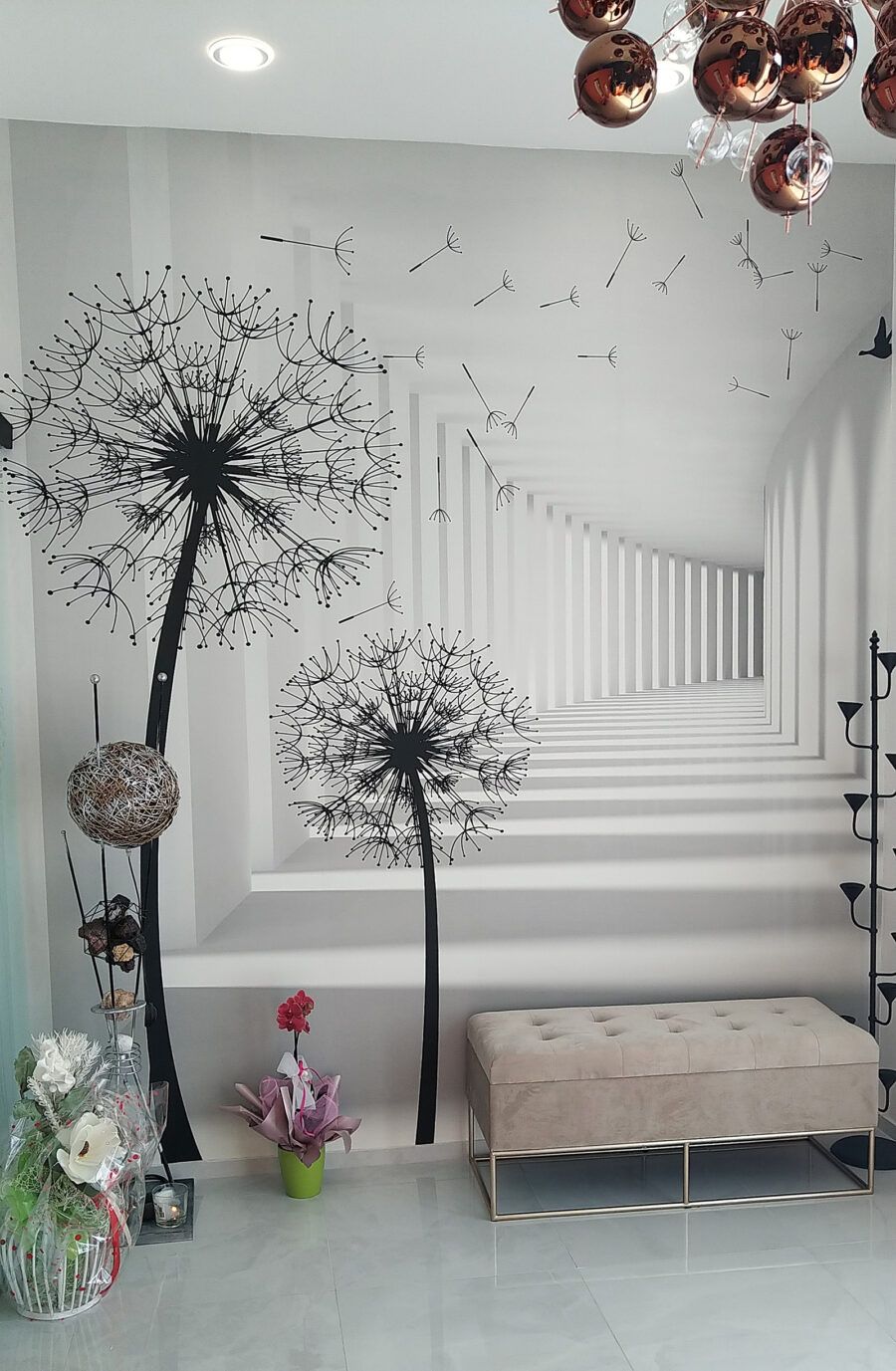 Imaginez que vous entrez dans une pièce et que vous êtes accueilli par la danse fantaisiste des pissenlits ! Cette peinture murale, intitulée “Silhouette noire d’un pissenlit”, fait exactement cela – c’est comme capturer une douce journée de brise à l’intérieur. Les silhouettes noires frappantes sur une toile de fond lumineuse créent un contraste étonnant. Ce qui est génial, c’est que cela semble étirer l’espace, ce qui donne l’impression que la pièce est plus grande… et plus ouverte. De plus, ces graines flottantes ont quelque chose d’apaisant, n’est-ce pas ? C’est presque comme si vous pouviez sentir une douce brise souffler à travers elles.