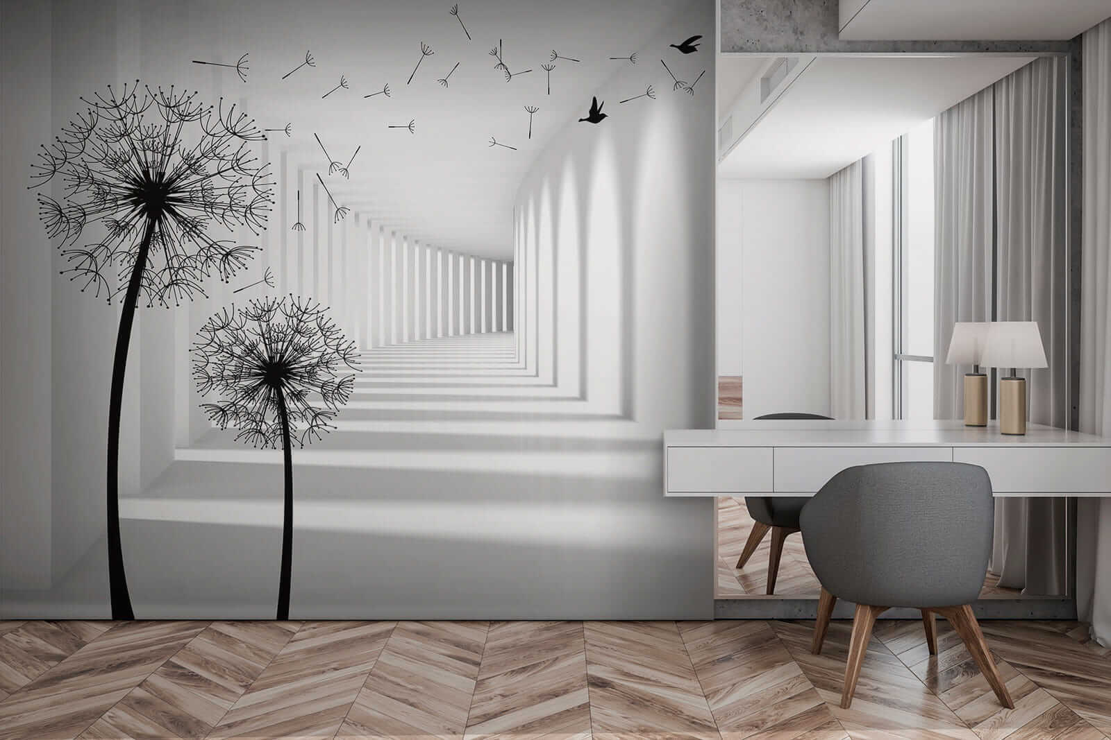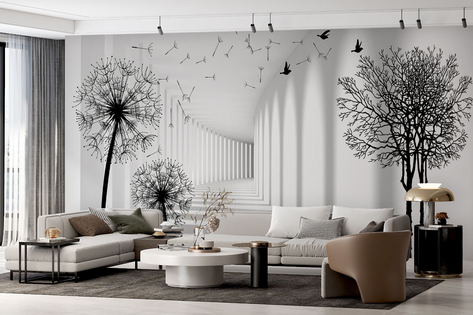 Imaginez que vous entrez dans une pièce et que vous êtes accueilli par la danse fantaisiste des pissenlits ! Cette peinture murale, intitulée “Silhouette noire d’un pissenlit”, fait exactement cela – c’est comme capturer une douce journée de brise à l’intérieur. Les silhouettes noires frappantes sur une toile de fond lumineuse créent un contraste étonnant. Ce qui est génial, c’est que cela semble étirer l’espace, ce qui donne l’impression que la pièce est plus grande… et plus ouverte. De plus, ces graines flottantes ont quelque chose d’apaisant, n’est-ce pas ? C’est presque comme si vous pouviez sentir une douce brise souffler à travers elles.
