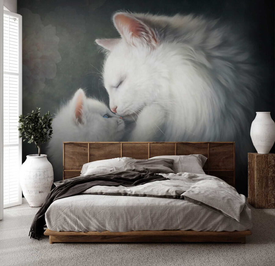 Oh, regardez ces deux chéris duveteux ! Cette peinture murale “Feline Affection at its Finest” fera fondre les cœurs. Elle est parfaite pour toute pièce ayant besoin d’une touche de chaleur et de fantaisie, qu’il s’agisse d’une chambre d’enfant, d’un coin lecture confortable ou même du salon. Imaginez que vous vous réveillez tous les jours avec cet adorable duo de maman et de chaton… c’est un vrai coup de fouet ! Et puis, qui peut résister à ces fourrures douces et à ces câlins tendres, n’est-ce pas ?
