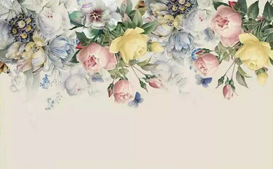 3 avis pour Papier peint Fleurs délicates avec des papillons colorés