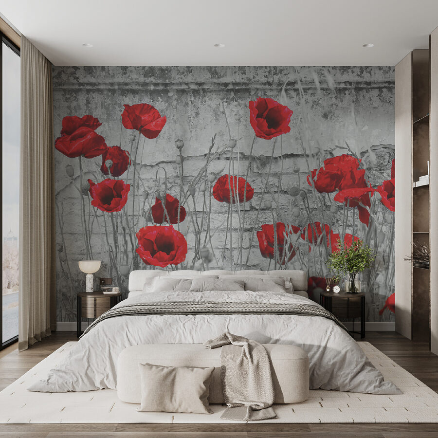 Imaginez que vous entriez dans une pièce et que vous soyez instantanément accueilli par une explosion de coquelicots rouges vifs sur un mur rustique et usé par le temps. Cette peinture murale est comme un magnifique jardin secret que l’on découvre par hasard au milieu de la ville. Tout est question de contraste – des fleurs flamboyantes sur une toile de fond rugueuse, créant une ambiance à la fois confortable et énergique. Pensez-y : chaque coup d’œil à ces pétales vibrants pourrait égayer l’humeur, surtout un jour de pluie. Idéal pour quelqu’un qui aime une touche de nature et une touche de drame dans son décor. De plus, qui ne voudrait pas se sentir un peu artiste à chaque fois qu’il passe devant ? Et puis, c’est beaucoup moins d’entretien qu’un vrai jardin !