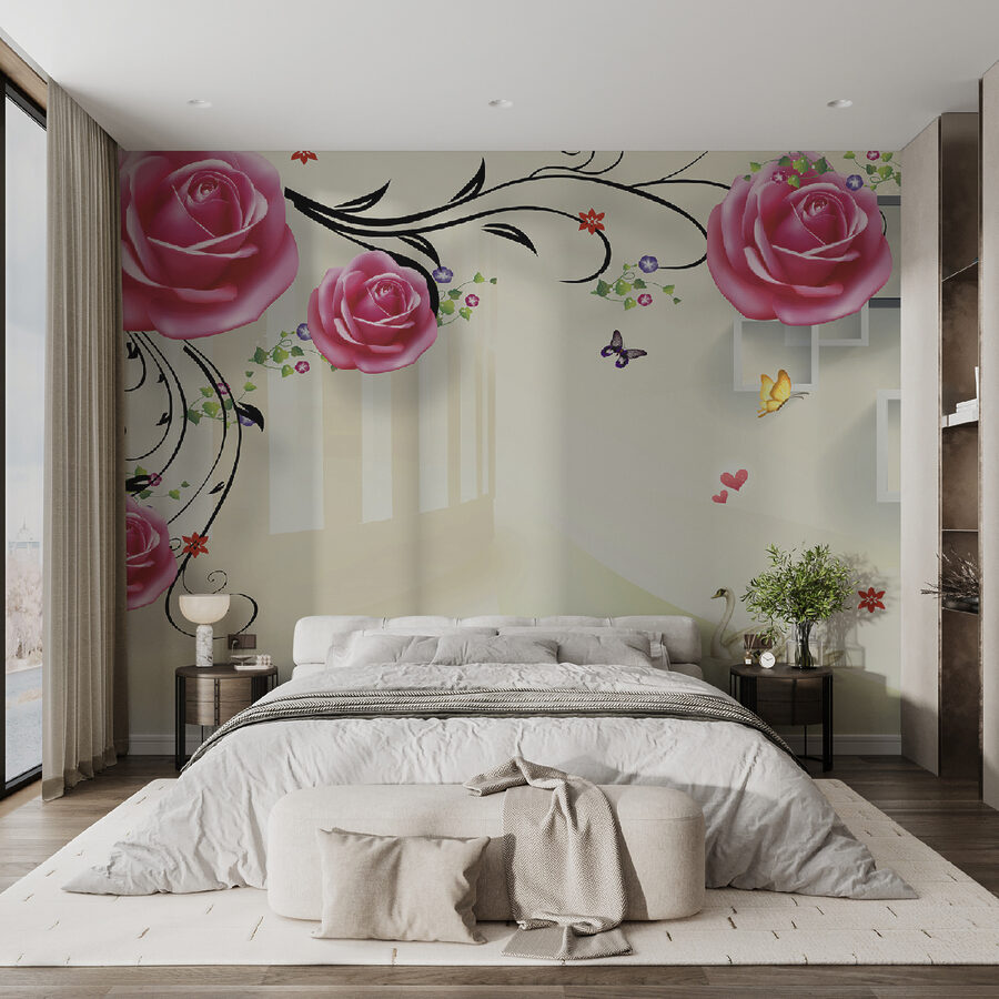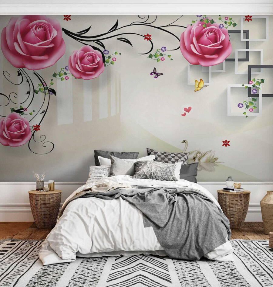 Imaginez que vous vous réveillez tous les jours devant cette peinture murale envoûtante – c’est comme si vous entriez dans un jardin de rêve ! Des cygnes glissant gracieusement sous des roses en fleurs, avec des papillons voletant autour, donnent à votre espace une touche de magie sereine. Parfait pour tous ceux qui souhaitent apporter un peu de nature à l’intérieur avec une touche d’élégance. Et ces roses, on dirait presque qu’on peut les toucher !