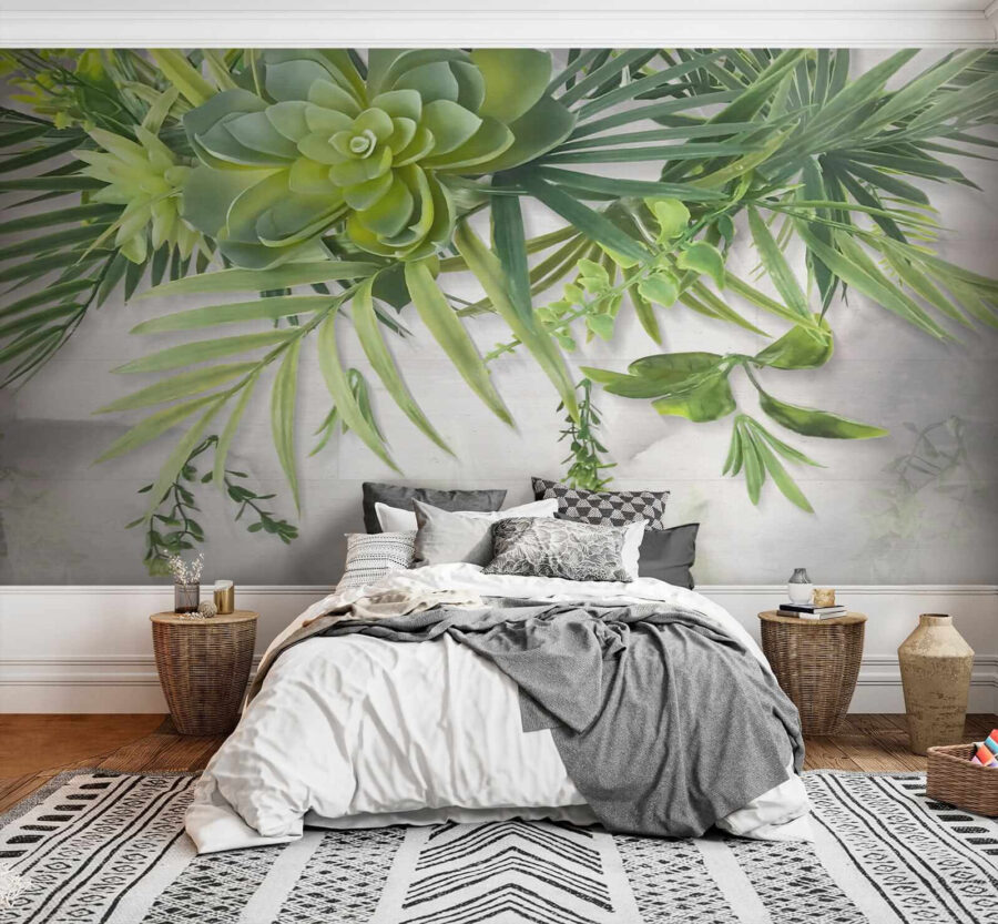 Imaginez que vous sirotiez votre café du matin sous une canopée verdoyante, sans quitter votre salon ! Ce “Tableau mural Succulentes vertes et branches feuillues au-dessus de la tête” transforme n’importe quel espace en une échappée luxuriante et tranquille. Ces succulentes vibrantes et ces délicates branches feuillues qui pendent au-dessus donnent l’impression d’être presque tridimensionnelles. C’est parfait pour respirer un peu de nature, surtout si vous avez la main noire (pas besoin d’arroser !). Que vous rêviez d’une jungle urbaine en ville ou que vous cherchiez à ajouter une touche de fraîcheur à votre restaurant sur le thème de la nature, cette peinture murale est faite pour vous. C’est comme si vous aviez un morceau de jardin botanique à l’intérieur, les insectes nuisibles en moins ! Ajoutez une touche de zen à n’importe quelle pièce… et peut-être un peu d’envie de la part de vos amis.