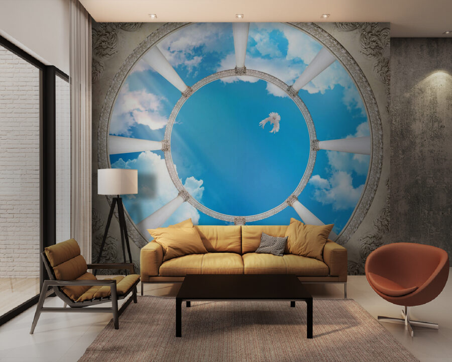 Imaginez que vous entrez dans une pièce où un ciel à couper le souffle rencontre d’élégantes colonnes, tandis qu’un oiseau plane au-dessus. Cette peinture murale, avec son effet 3D, transforme instantanément n’importe quel espace en une évasion de rêve. C’est comme si vous aviez un morceau de l’extérieur dans votre salon. Vos amis s’arrêteront peut-être au milieu d’une conversation, regardant en l’air, se demandant s’ils sont entrés dans un grand hall ou dans un ciel serein.