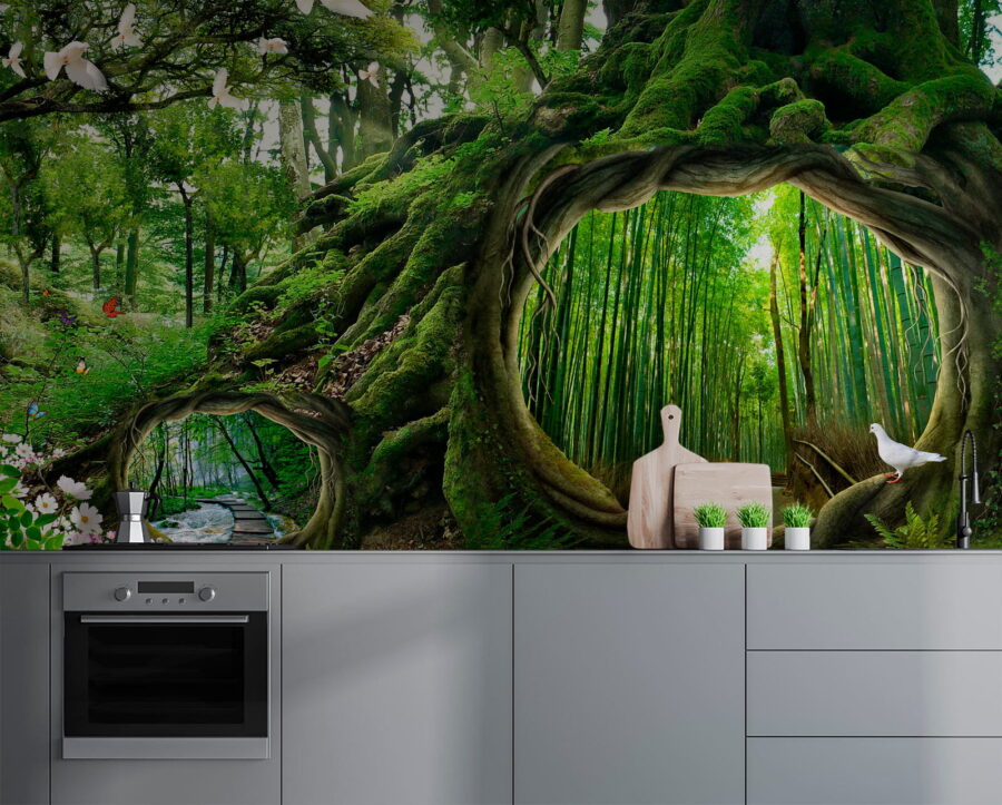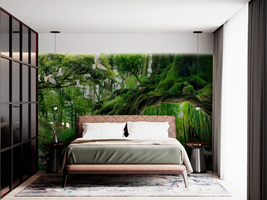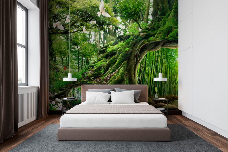 Transformez votre espace en une escapade boisée confortable avec la « fresque murale Arbre avec un trou au milieu ». Imaginez que vous entrez dans votre chambre et que vous avez l’impression d’avoir pénétré dans une forêt magique. Cette fresque capture l’essence de la nature, avec des verts vibrants et de petits détails fantaisistes, comme des papillons et des colombes gracieuses. L’arbre, avec son creux accueillant, joue des tours à l’esprit : c’est comme une porte vers un autre monde enchanteur ! Parfait pour les rêveurs ou tous ceux qui ont besoin d’un peu de thérapie par la nature. Considérez-le comme un rappel quotidien pour respirer et vous détendre, en faisant entrer l’extérieur tout en profitant du confort de votre maison. C’est un papier peint qui murmure des histoires d’aventure et de tranquillité, faisant de chaque regard une mini-escapade. Comment pourrait-on y résister ?