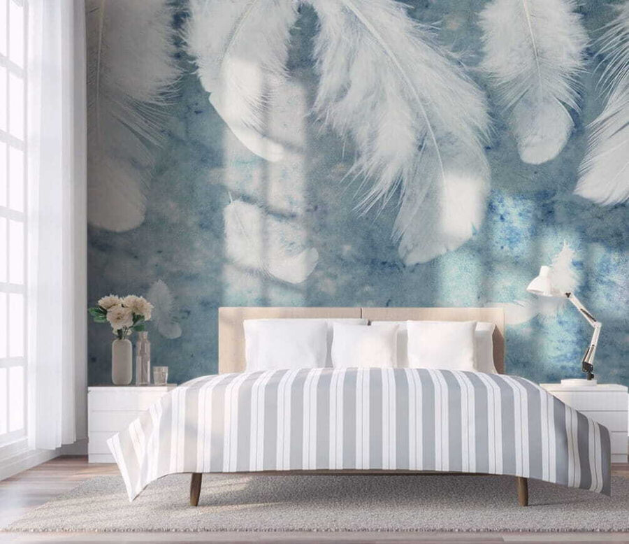 Imaginez ceci : de douces plumes flottant sur un fond doux et rêveur. C’est exactement ce que vous obtiendrez avec la peinture murale “Plumes flottant sur un fond doux”. C’est comme si vous entriez dans une rêverie sereine à chaque fois que vous pénétrez dans la pièce ! Les plumes, légères comme l’air, semblent presque danser, vous donnant l’impression d’être en apesanteur et de vous sentir à l’aise.