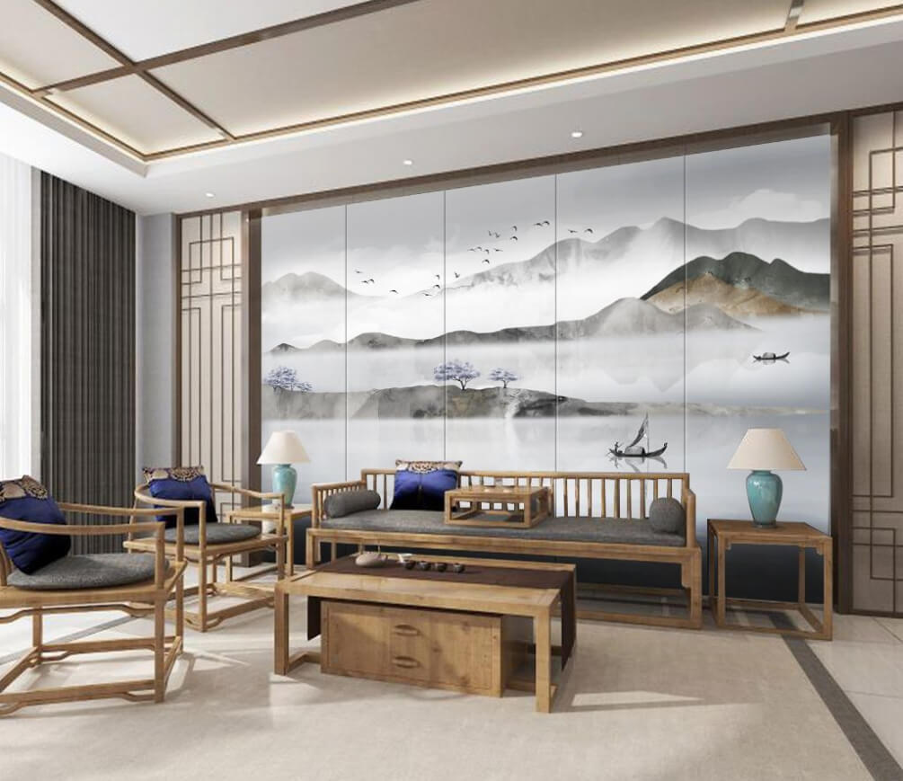 Voici une peinture murale qui vous donnera l’impression de flotter dans un pays de rêve serein. Imaginez que vous sirotiez votre café du matin en contemplant cette scène apaisante d’un bateau solitaire dérivant sur un lac miroitant, entouré de montagnes brumeuses. Ah, la tranquillité… Vous pourriez oublier que vous êtes dans votre salon ! L’ambiance zen et enchanteresse qui s’en dégage vous attire, comme si les montagnes et le bateau voulaient vous chuchoter leurs secrets. Parfait pour ceux qui ont besoin d’un peu de calme ou d’inspiration artistique dans leur espace. Vous pourriez presque sentir le doux bruissement des arbres ou la douce ondulation de l’eau… Respirez, détendez-vous, peut-être même vous perdrez-vous dans vos pensées. Qui sait ? Soudain, votre maison n’est plus seulement une maison – c’est une retraite paisible.