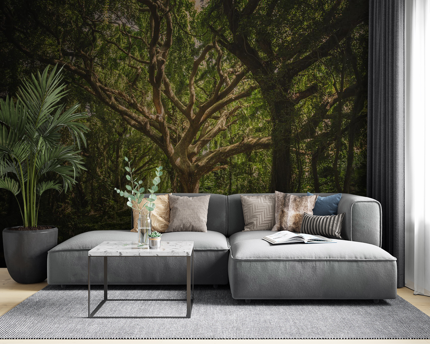 Transformez n’importe quel espace en un havre de paix grâce à cette superbe fresque murale représentant un arbre majestueux niché dans une forêt luxuriante. Les riches nuances de vert et de brun terreux invitent à la sérénité, donnant même aux plus petites pièces l’impression d’être enveloppées par la nature. Imaginez-vous vous réveiller et être accueilli par le doux balancement des feuilles, comme une danse de la nature. Parfaite pour les coins confortables ou les bureaux à domicile, cette fresque murale vous murmure : « Détendez-vous, vous êtes dans une forêt ! » De plus, c’est un excellent moyen d’apporter une touche de nature à l’intérieur, sans avoir à supporter les moustiques. Rehaussez vos murs et laissez votre décoration respirer !