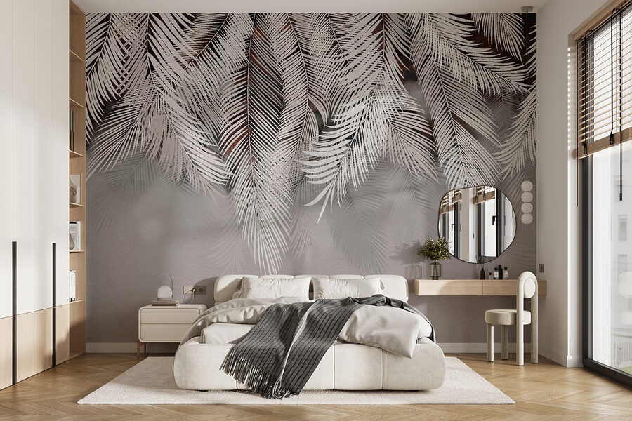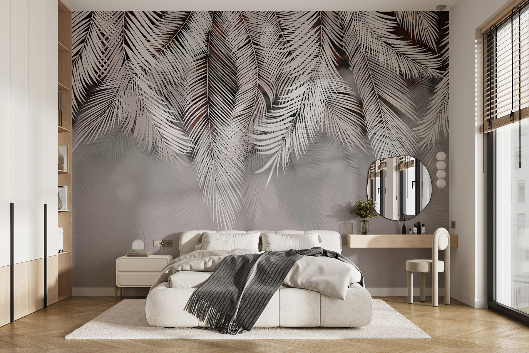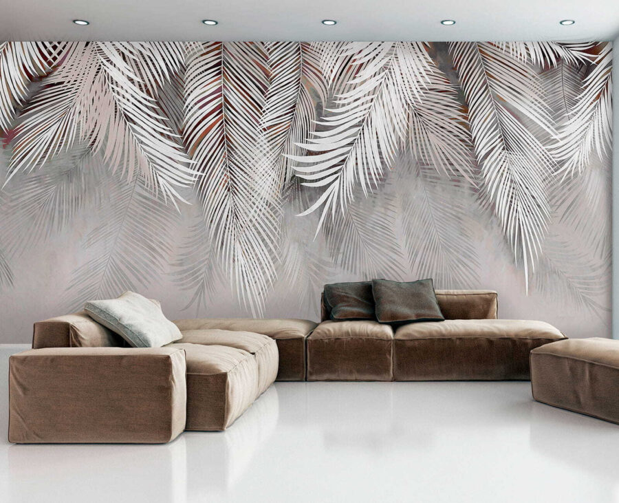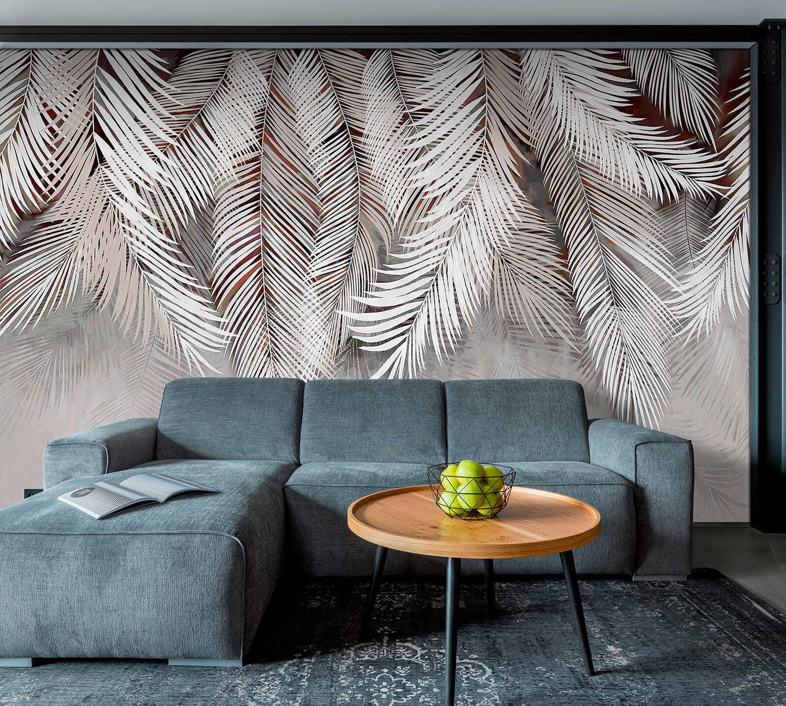 3 avis pour Papier peint Feuilles de palmier argentées sur fond doux
