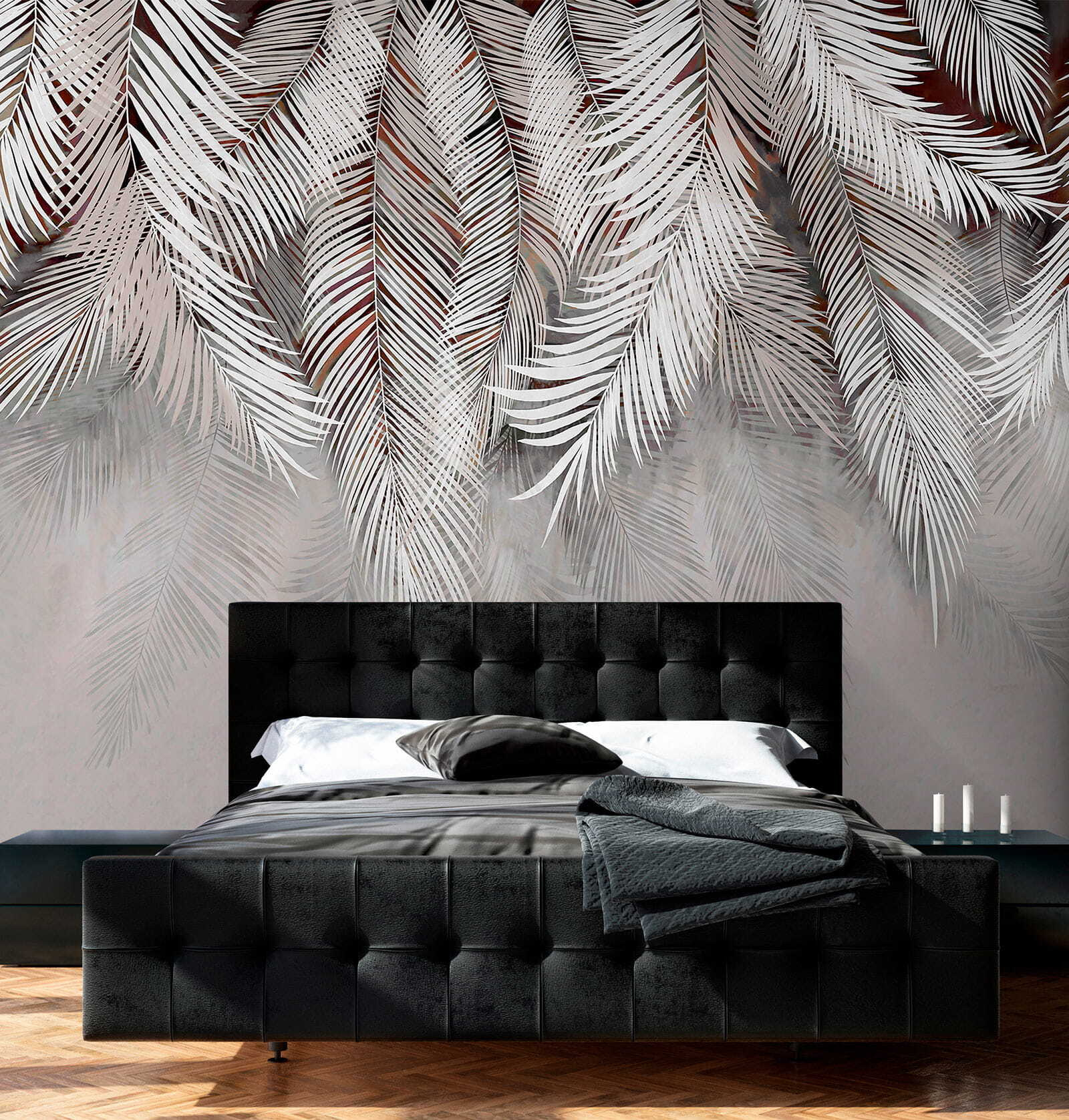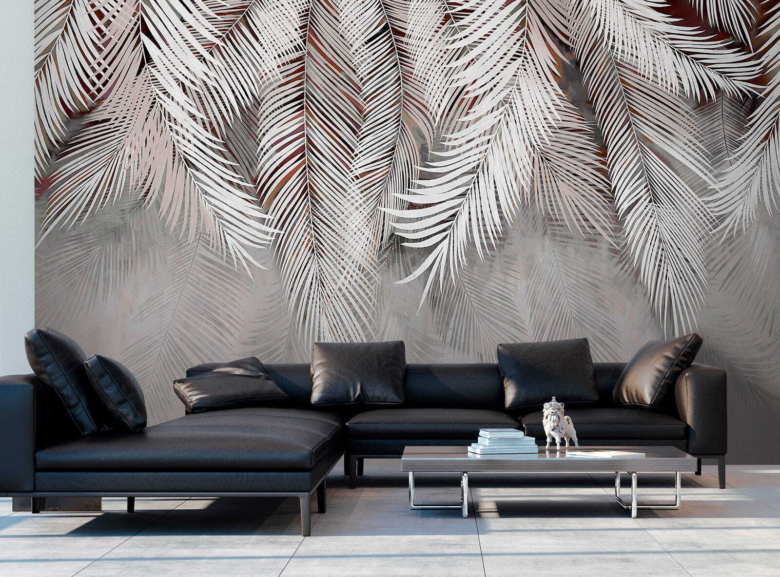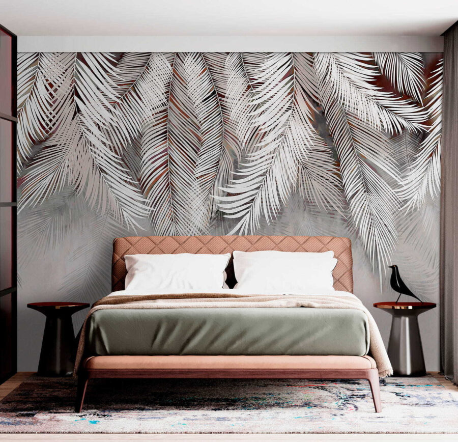 3 avis pour Papier peint Feuilles de palmier argentées sur fond doux