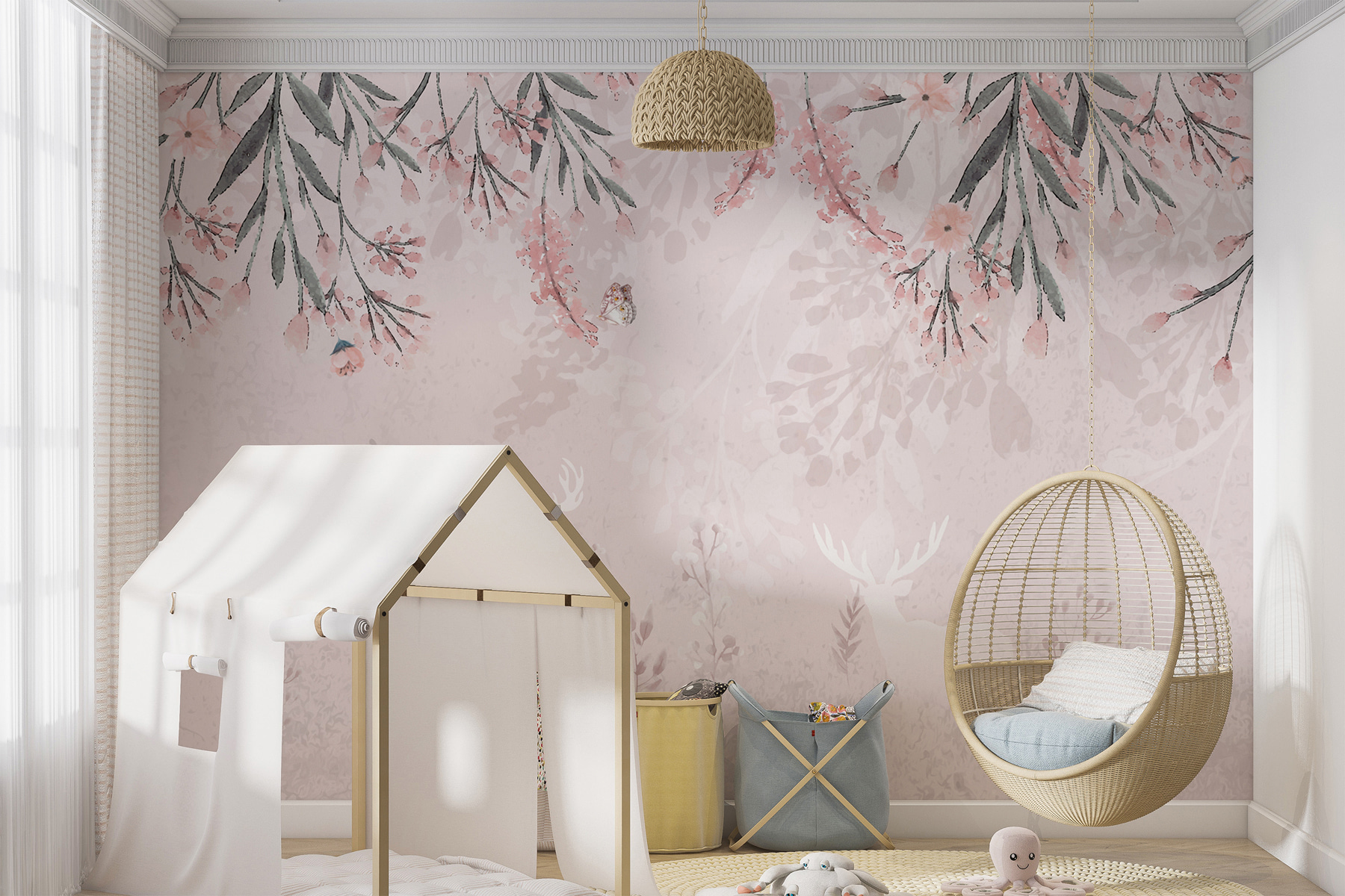 Vous avez déjà rêvé que la chambre de votre enfant se transforme en une forêt fantaisiste ? La peinture murale “Cerf blanc avec bois” est exactement ce qu’il vous faut ! Imaginez des couleurs pastel douces avec des cerfs doux et gracieux se mêlant à des fleurs délicates. C’est comme si la nature était venue vous dire bonjour ! Imaginez votre enfant se réveiller chaque matin devant cette scène enchanteresse… de la magie à l’état pur. C’est parfait pour les enfants qui aiment les contes de fées ou pour tous ceux qui apprécient une touche de sérénité. De plus, cela ne vous donne-t-il pas envie de respirer profondément et de vous détendre ? Les détails subtils lui confèrent un caractère tout à fait spécial, idéal pour créer une oasis de rêve et de paix chez soi.