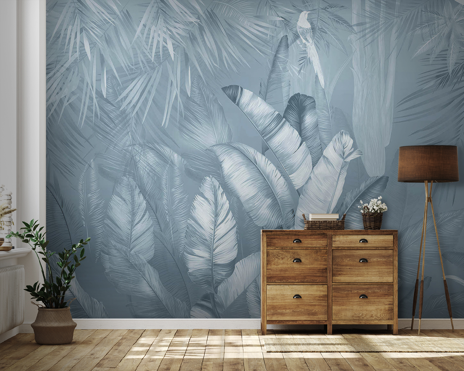 Si vous souhaitez apporter une touche de jungle dans votre espace, jetez un coup d’œil aux “Muraux Tropical Foliage with Perched Bird” (feuillage tropical avec oiseau perché). C’est comme si vous pénétriez dans une forêt tropicale sereine à chaque fois que vous entrez dans la pièce. Imaginez que vous preniez un café paresseux le dimanche matin pendant qu’un oiseau est perché avec désinvolture parmi ces feuilles luxuriantes – ça fait rêver, n’est-ce pas ? Les feuilles fraîches et détaillées créent une telle ambiance, apportant une touche fraîche et exotique à n’importe quel mur. Cette peinture murale n’est pas seulement un décor, c’est une évasion. Parfait pour tous ceux qui rêvent de leurs prochaines vacances tropicales.