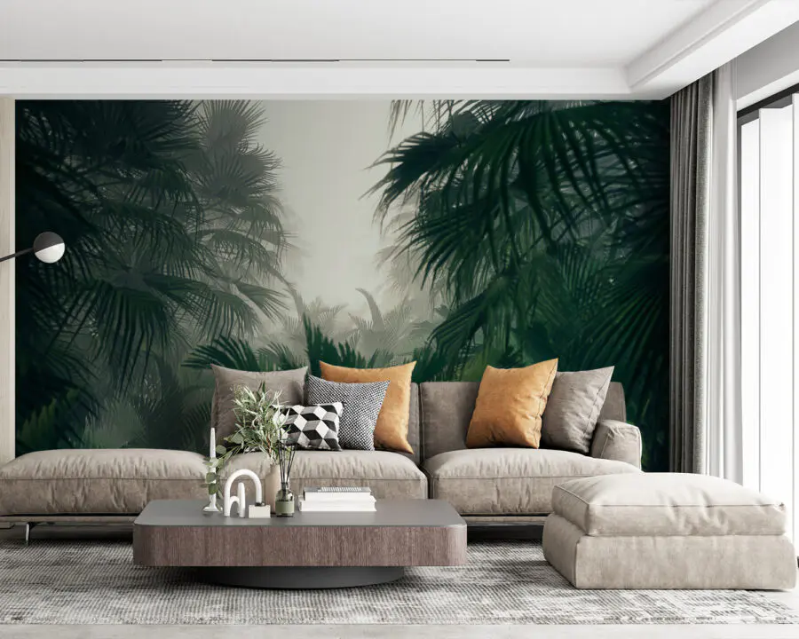 Step into a dreamy escape with this stunning wall mural featuring a group of palm trees shrouded in a soft fog. It’s like bringing a tropical forest right into your living room—no sunscreen required! Imagine cozying up in your space, feeling like you’ve wandered into a secret garden. The gentle greens and misty vibes create a calm atmosphere that whispers relaxation. Perfect for those days when life gets a bit too hectic, this mural makes every glance feel like a mini-vacation. Pair it with some cozy throws or a rattan chair, and you’re set for some serious zen vibes. Who knew artistry could be such a chill companion?