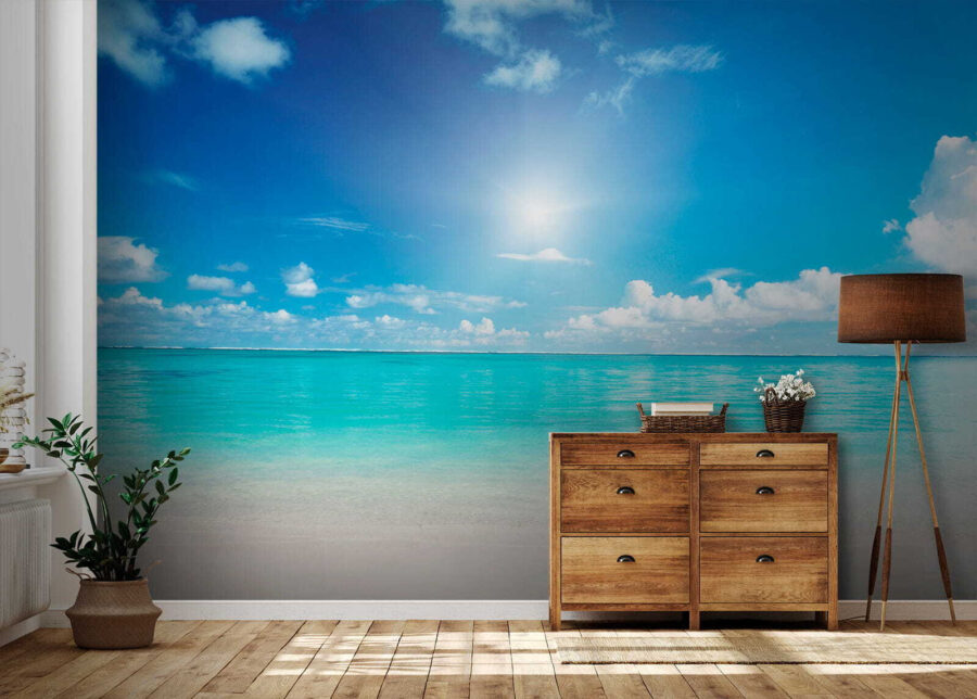 Transformez n’importe quelle pièce en une escapade sereine grâce à cette superbe peinture murale représentant un ciel bleu, des nuages duveteux et un soleil éclatant jetant sa chaude lumière. Imaginez que vous entrez dans votre espace et que vous avez l’impression d’avoir mis le pied sur une plage paisible, même s’il ne s’agit que de votre salon. Cette peinture murale capture l’essence des vibrations côtières, invitant au calme et à la relaxation. Parfaite pour rêvasser ou planifier votre prochaine escapade en mer, elle apporte sans effort une tranche de nature à l’intérieur. Qui ne voudrait pas se réveiller avec une vue qui n’est que soleil et vagues douces ? C’est comme si vos murs partaient en vacances !