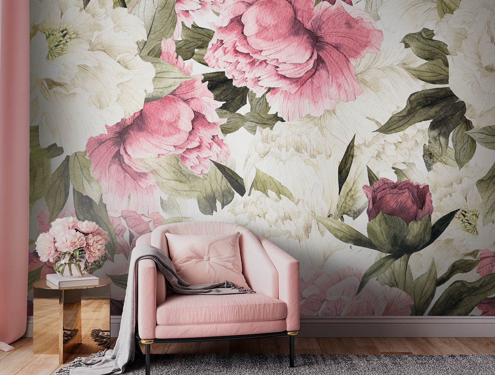 Transformez votre espace avec cette ravissante fresque murale représentant des fleurs roses et blanches. C’est comme si vous faisiez entrer un jardin dans votre intérieur, sans les inconvénients. Imaginez-vous vous réveiller au milieu de ces fleurs, qui égayent vos matins et vous donnent l’impression que chaque jour est un jour de printemps. Les teintes douces ajoutent une touche de délicatesse, parfaite pour un coin confortable ou peut-être ce mur qui vous semble un peu trop solitaire. Vos amis vous complimenteront peut-être et vous demanderont où ils peuvent s’en procurer une – c’est un sujet de conversation garanti. De plus, qui ne voudrait pas être entouré d’une telle beauté ? Mais attention, cela pourrait rendre vos autres murs un peu jaloux !
