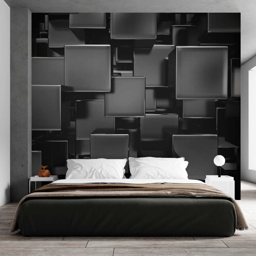 Jetez un coup d’œil à cette superbe fresque murale – “Des cubes sombres formant un motif géométrique abstrait”. C’est comme si vous pénétriez dans une galerie d’art à chaque fois que vous entrez dans la pièce ! Ces cubes noirs et élégants créent un effet 3D tellement cool qu’il est parfait pour ceux qui aiment ajouter une touche de sophistication supplémentaire à leur espace. Imaginez que vous receviez des amis pour le dîner ; ils remarqueront et admireront certainement l’effet. De plus, il donne à votre pièce un aspect plus grand et plus moderne. Il est parfait pour un salon afin de le mettre en valeur ou même pour un bureau branché. C’est un moyen fabuleux de donner un coup de jeune à n’importe quel mur sans pour autant tomber dans la folie des couleurs. Sérieusement, cette peinture murale a de la personnalité et du style à revendre !