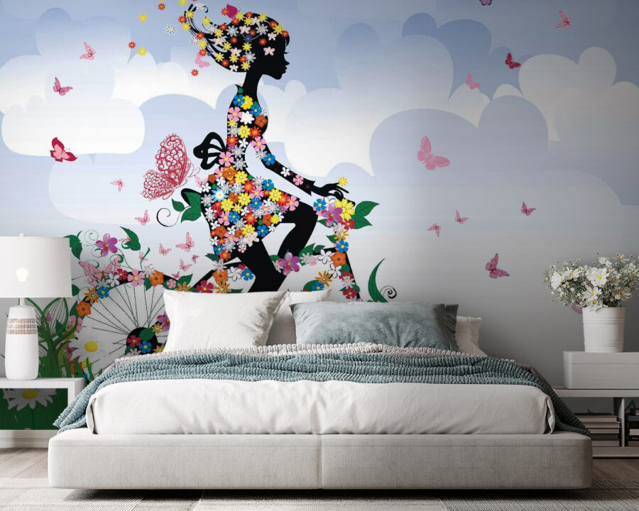 Voici une touche fantaisiste qui s’intègre à tous les espaces : la « fresque murale Femme à vélo avec des fleurs ». Cette fresque n’est pas seulement une décoration, elle apporte une bouffée de printemps dans votre intérieur. Imaginez une silhouette dynamique à vélo dans un jardin débordant de fleurs et de papillons virevoltants. Elle est parfaite pour égayer un mur terne qui manque de vie ou un coin qui a besoin d’un peu de magie. Imaginez une soirée agréable entre amis, à rire et discuter, tandis que cette fresque apporte une touche de joie à la pièce. Ce n’est pas seulement une image, elle suscite des sourires et des rêveries de jours ensoleillés. Un rappel délicieux que la vie est un voyage qui s’apprécie pleinement lorsqu’elle est en pleine floraison !