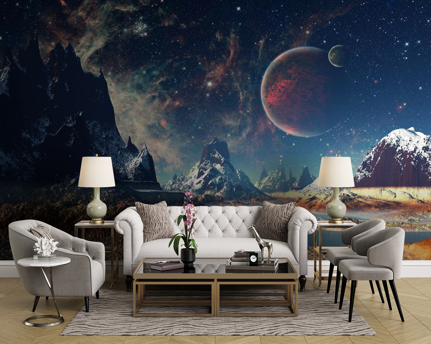 Transformez n’importe quel espace avec cette superbe peinture murale de montagne, où les pics enneigés rencontrent une toile de fond cosmique étoilée. Imaginez que vous entrez dans une pièce qui ressemble à une aventure, où chaque regard vers les montagnes fait naître des rêves d’exploration de mondes inexplorés. Cette pièce apporte un sentiment d’évasion sur vos murs, comme si vous regardiez des galaxies lointaines en sirotant votre café du matin. C’est le genre de décor qui non seulement embellit mais aussi inspire. Parfait pour un coin douillet ou un mur qui a besoin d’un peu plus d’amour. Donnez à votre maison l’impression d’être un portail vers un endroit extraordinaire.