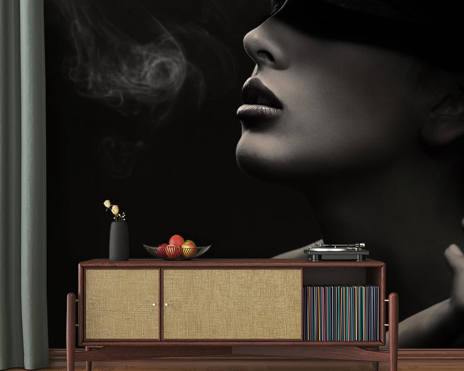 Transformez votre espace en un havre de paix artistique avec cette peinture murale captivante d’une femme au chapeau, fumant nonchalamment. C’est comme si vous entriez dans un café élégant où chaque coin de rue chuchote l’élégance et l’intrigue. La façon dont elle regarde au loin, entourée d’un tourbillon de fumée, ajoute une touche de mystère, idéale pour susciter des conversations intéressantes.