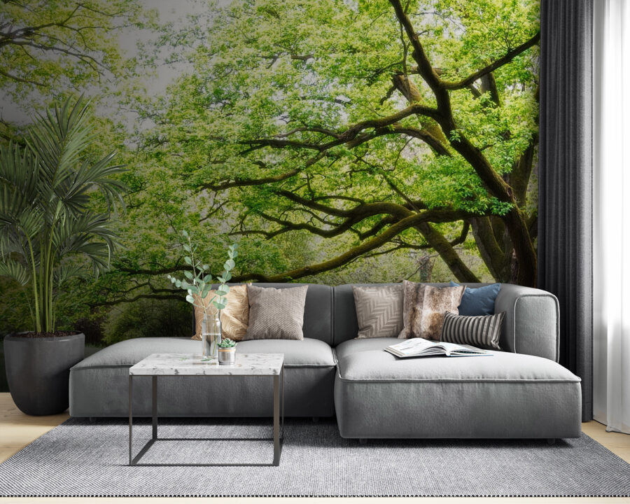 Cette peinture murale a le don de rendre une pièce plus grande, plus lumineuse et plus vivante. Peut-être est-ce dû aux feuilles luxuriantes ou à la façon rêveuse dont les branches s’étendent sur l’espace – qui sait ? Mais une chose est sûre : il fait entrer l’extérieur dans la pièce. C’est parfait pour tous ceux qui s’ennuient de la forêt mais ne peuvent pas toujours s’en éloigner. De plus, il se marie à merveille avec des meubles en bois, des tapis douillets et une tasse de thé bien chaude.