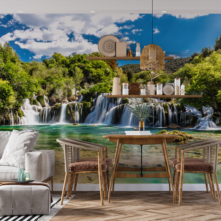 Transformez n’importe quelle pièce en un lieu d’évasion serein grâce à cette superbe peinture murale représentant un ciel bleu parsemé de nuages cotonneux et d’arbres vibrants. Imaginez que vous vous réveillez chaque jour avec le doux rappel de la beauté de la nature – c’est comme si vous faisiez entrer l’extérieur, sans les insectes. Parfait pour un salon confortable ou un coin paisible, il invite à la rêverie et aux ondes ensoleillées. De plus, c’est un excellent moyen d’engager la conversation. Imaginez vos amis en train d’admirer votre “oasis extérieure”, tout en vous demandant secrètement comment vous avez réussi à obtenir un look aussi cool. C’est une touche de nature qui ne se démode jamais.