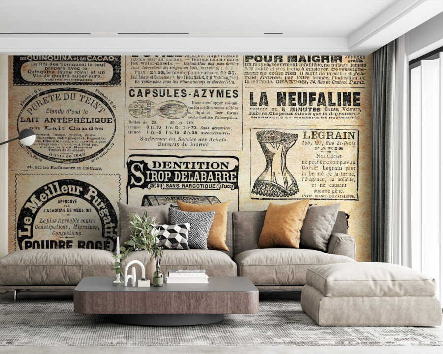 Le revêtement vinylique est une fine couche de PVC appliquée sur un support intissé. La présence de vinyle rend le papier peint résistant aux dommages, permet un nettoyage facile à l’aide d’une éponge humide et donne à la surface une texture gaufrée, ressemblant à un tissu de lin.