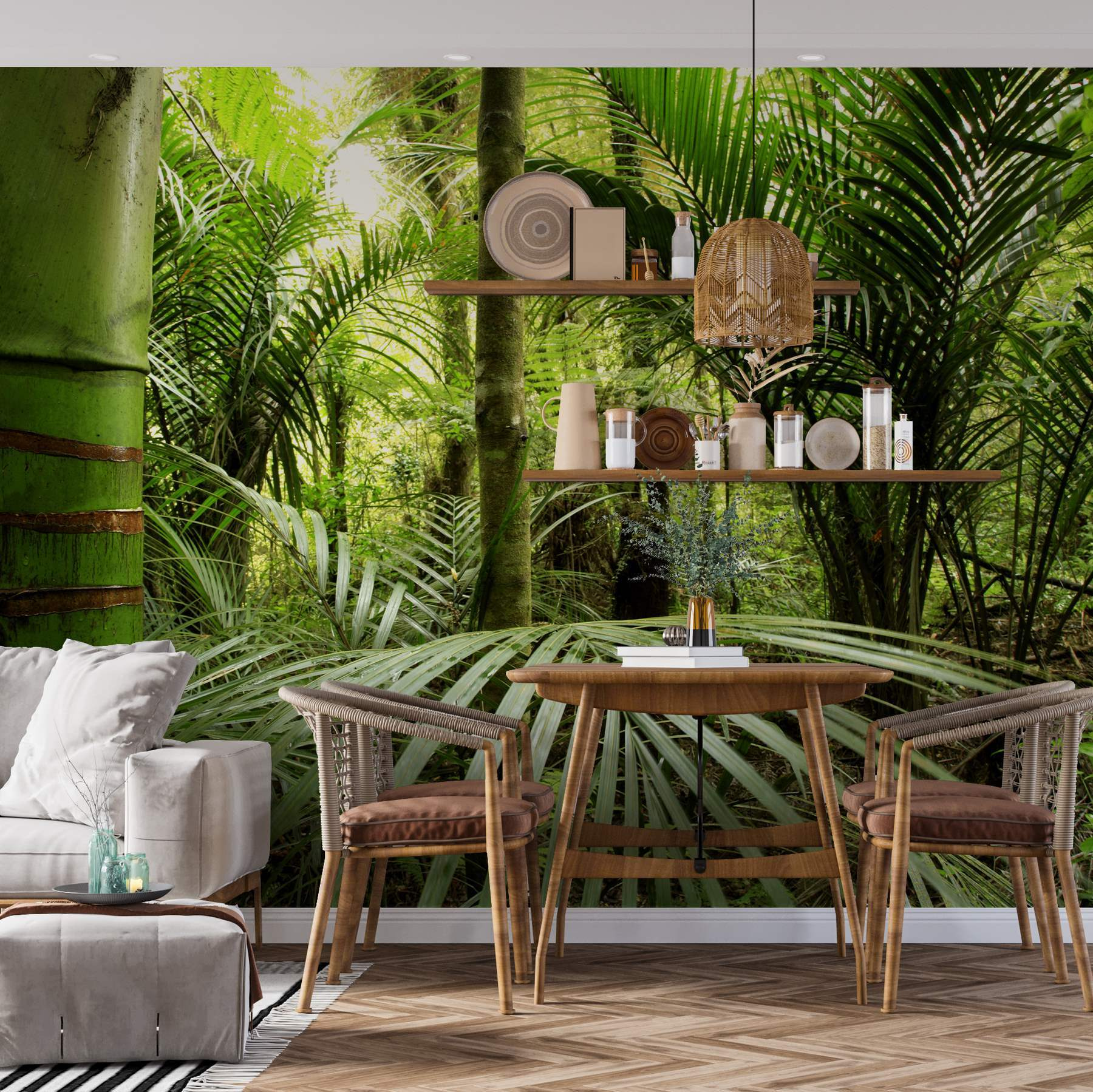 Vous avez toujours rêvé de vous évader dans un paradis verdoyant sans quitter votre salon ? Cette peinture murale représentant une jungle verdoyante avec des palmiers vous permettra de réaliser ce rêve. C’est comme entrer dans un jardin secret, sans avoir besoin d’un passeport. Imaginez que vous sirotiez votre café du matin en ayant l’impression d’être en vacances exotiques. La verdure est si vivante que vous entendrez presque le bruissement des feuilles et le gazouillis des oiseaux. Parfait pour créer une retraite paisible, inspirée par la nature, dans n’importe quelle pièce. Donnez à votre espace l’ambiance de la jungle, sans avoir besoin de jumelles.