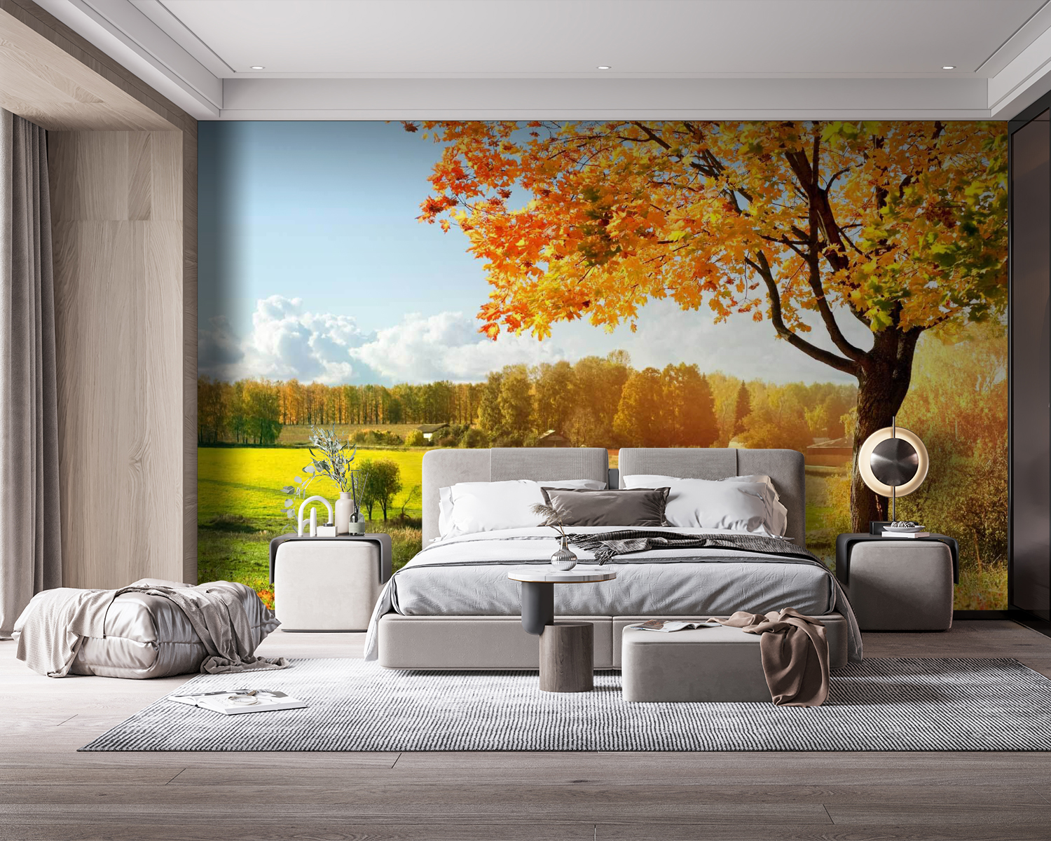 Imaginez que vous entrez dans une pièce et que vous êtes accueilli par la lueur vibrante des feuilles orange sur fond de ciel bleu ensoleillé. C’est exactement ce que vous offre cette fresque murale, « Arbre aux feuilles orange dans un champ » ! C’est comme une bouffée d’air frais chaque jour. Imaginez-vous en train de siroter votre café le matin, le regard perdu dans cette magnifique œuvre qui capture la beauté de la nature. Elle pourrait bien vous inspirer des rêveries spontanées sur les après-midis d’automne paresseux ou les pique-niques en famille. Elle est parfaite pour transformer un espace terne en un lieu vivant et chaleureux. De plus, elle ne manquera pas de susciter des conversations animées : qui n’aime pas discuter de la nature ? Laissez-vous gagner par cette ambiance !