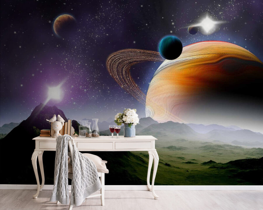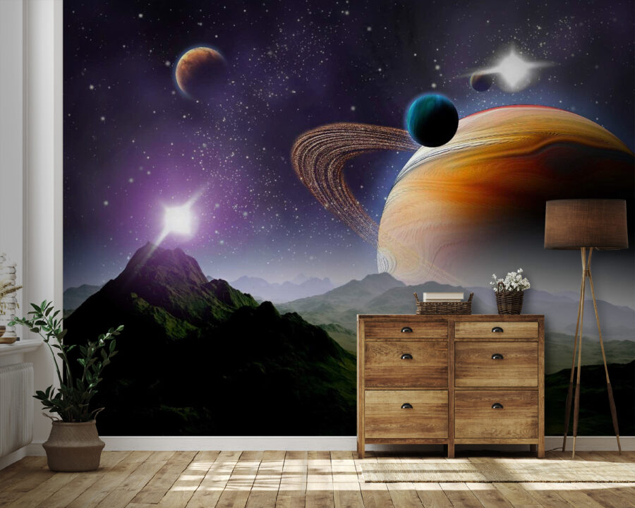 Transformez votre espace en une escapade cosmique avec cette superbe peinture murale représentant des planètes et des étoiles dans un vaste univers. Imaginez que vous pénétrez dans une galaxie où les couleurs s’entrechoquent dans une danse de teintes vibrantes et de doux tourbillons. Cette peinture murale ne se contente pas de décorer les murs, elle stimule l’imagination et l’envie de voyager. Imaginez-vous en train de vous lover dans un livre, de vous perdre dans une histoire tandis que l’univers vous entoure. Ou peut-être inspire-t-il des conversations profondes sur la vie, les rêves et ce qui existe. Adapté à n’importe quelle pièce, c’est un sujet de conversation idéal. Qui ne voudrait pas parler d’aventures interstellaires en sirotant un café ? Il ne s’agit pas seulement d’une peinture murale, mais d’une porte vers le cosmos, directement dans votre maison !