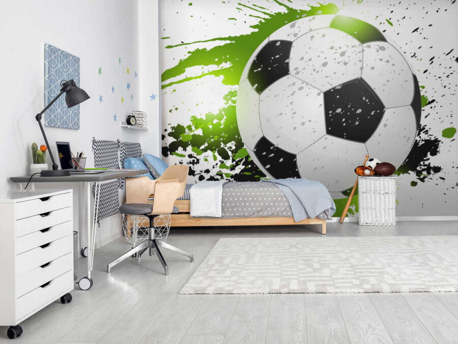 Bonjour à tous ! Imaginez un peu : une explosion de couleurs et un ballon de foot volant sur votre mur. C’est ce que vous obtenez avec la peinture murale “Ballon de football avec éclaboussures artistiques”. C’est comme si quelqu’un avait capturé le moment parfait et plein d’action d’un match, l’avait figé dans le temps, puis y avait ajouté une touche artistique. Les éclaboussures vertes et noires lui confèrent une ambiance si vivante et amusante. La chambre de votre enfant se transformera instantanément en un havre de paix sportif et cool. Et honnêtement, même vos amis pourraient l’envier ! Vous pouvez pratiquement entendre les acclamations et ressentir l’excitation à chaque fois que vous la regardez. Tout à fait idéal pour les jeunes fanatiques de football qui rêvent de grand, n’est-ce pas ?