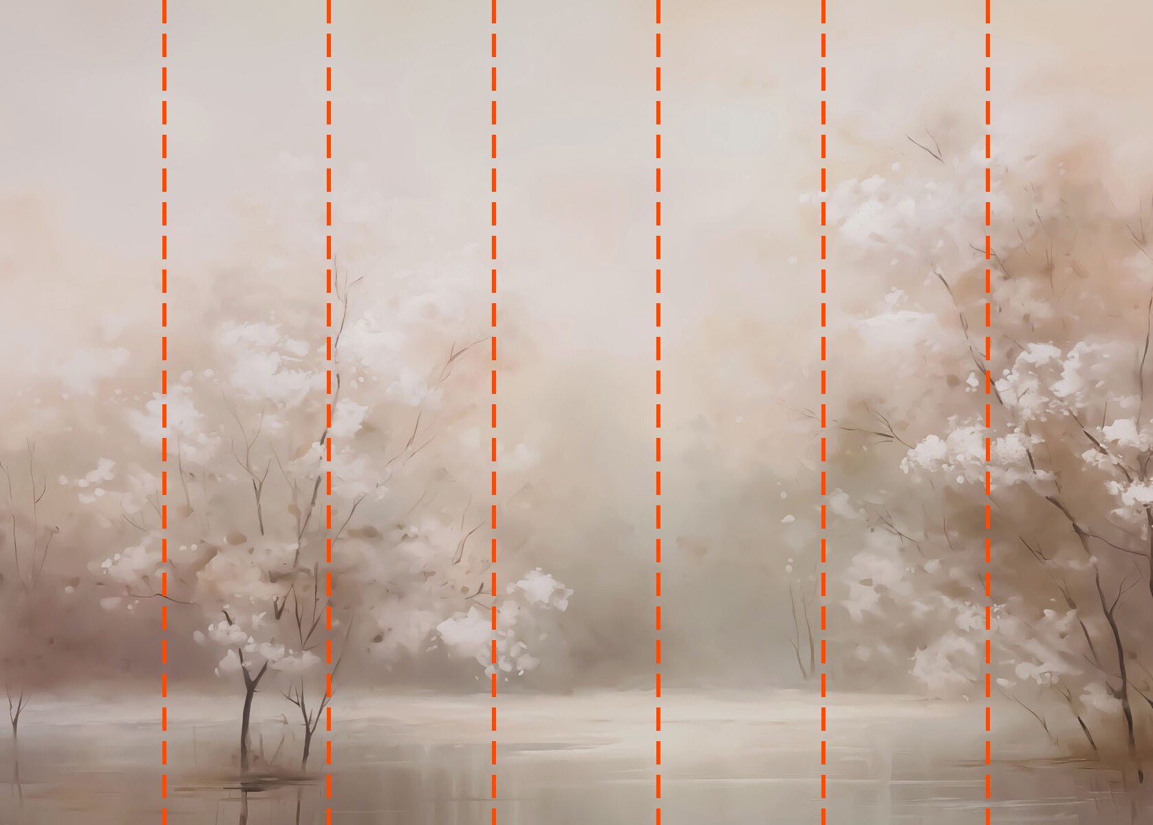 Votre papier peint sera préparé selon les dimensions que vous avez indiquées lors du processus de commande. La toile sera divisée en sections pratiques, chacune d’une largeur maximale de 50 cm.