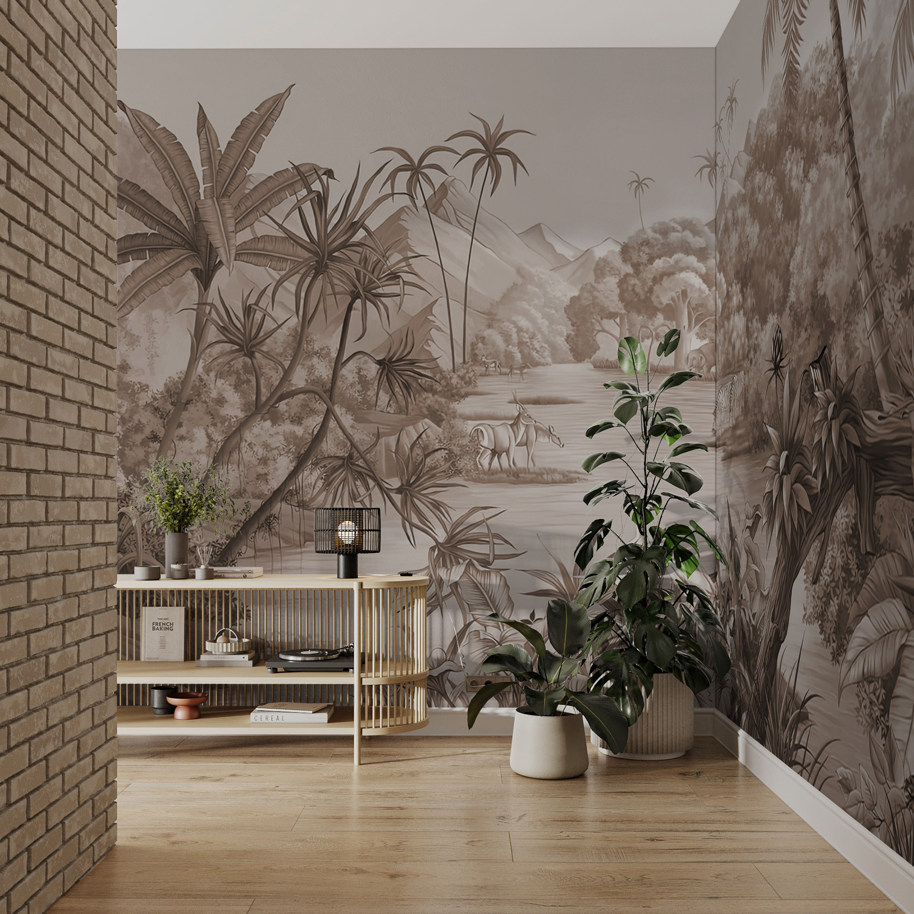 Transformez n’importe quelle pièce en une évasion tropicale grâce à cette superbe peinture murale représentant une scène de jungle vibrante. Imaginez-vous en train de vous prélasser au son de la nature qui vous entoure, tandis que des animaux gracieux se faufilent dans un feuillage luxuriant. Les tons terreux et les détails complexes de cette peinture murale créent une atmosphère sereine, donnant à chaque coup d’œil l’impression d’une mini-vacance. Parfaite pour un coin douillet ou une salle familiale animée, elle invite à la chaleur et à l’aventure. Imaginez que vous sirotiez un café en rêvant à des jungles sauvages – qui n’en voudrait pas ? Apportez un peu de nature à l’intérieur et regardez vos murs s’animer !