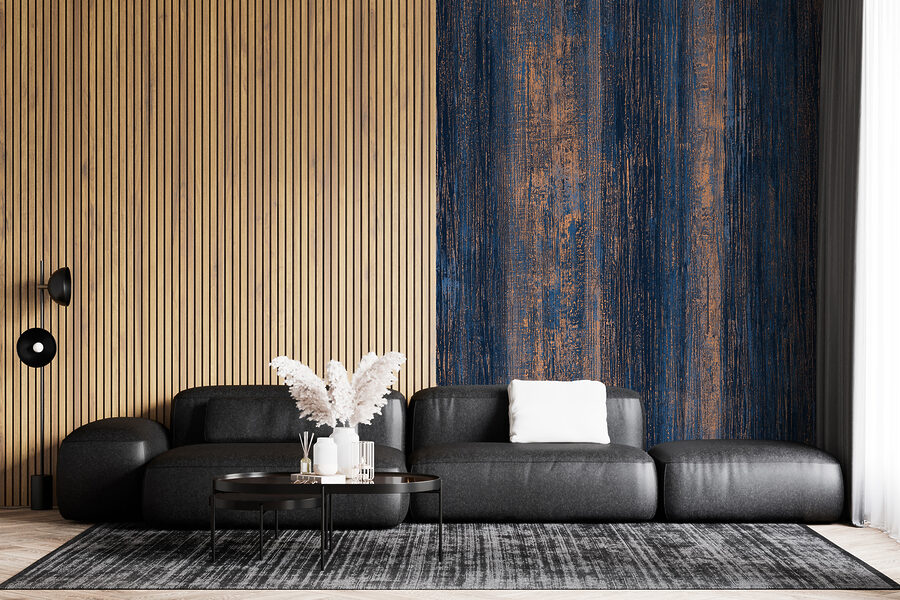 Papier peint Motif texturé bleu et bronze. (UGS: u59478)