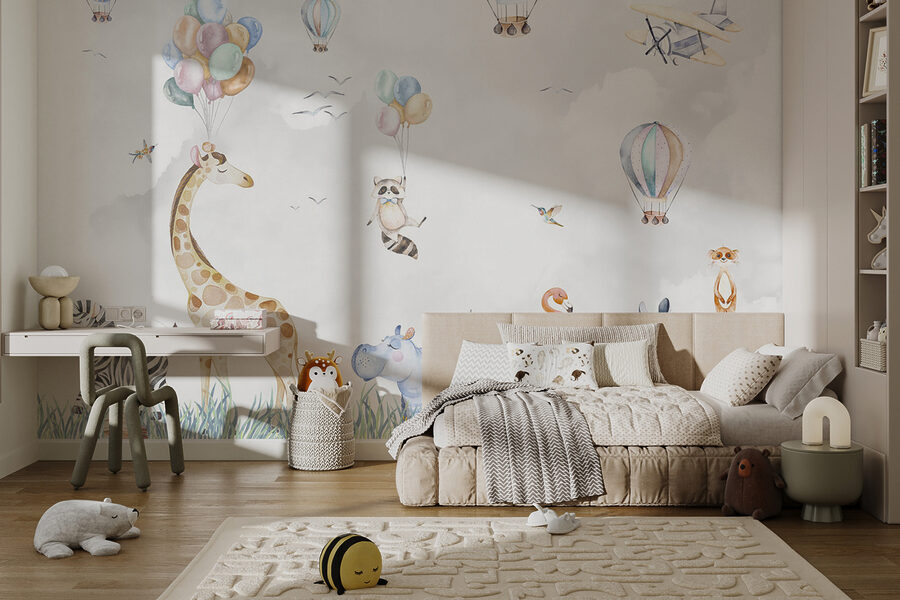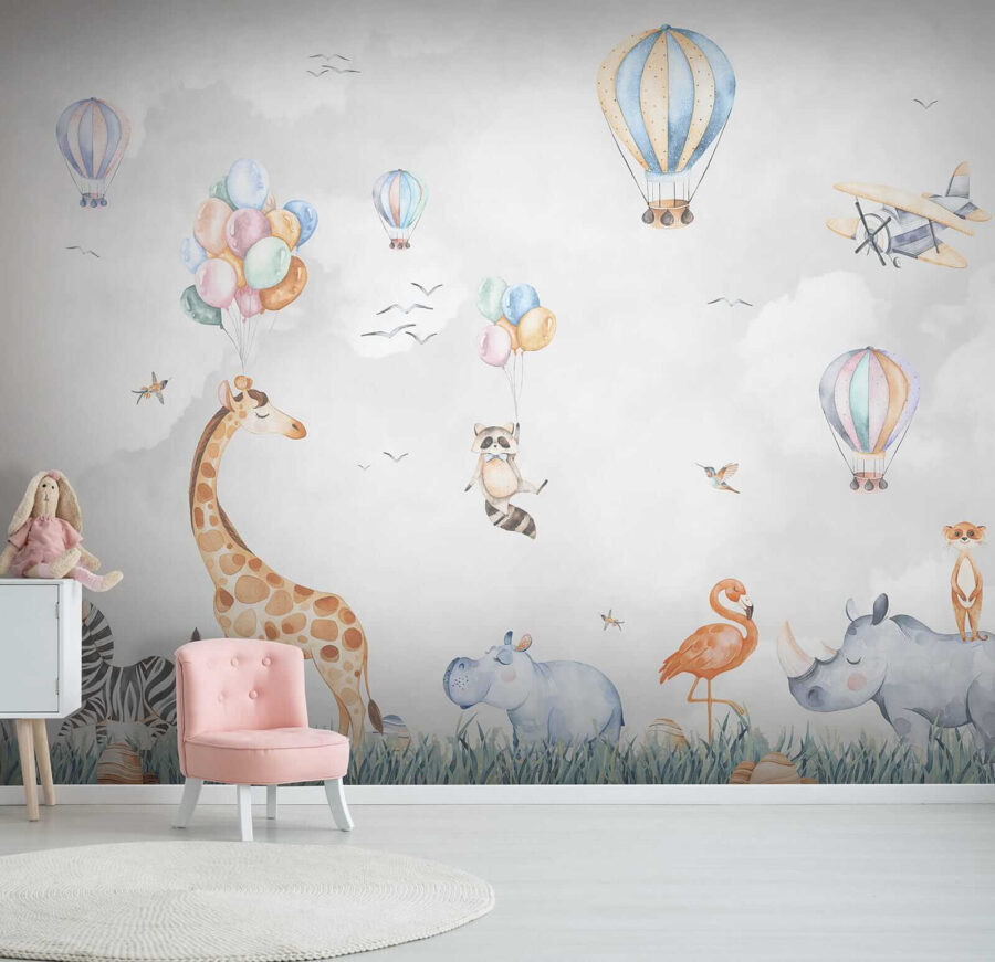 Voici une touche de fantaisie pour l’espace de votre enfant ! La peinture murale “Hippo in the Grass” est un véritable charme. Imaginez que vous entrez dans une pièce et que vous avez l’impression d’être dans un safari magique – des montgolfières qui flottent, des animaux comme des girafes et des zèbres qui se détendent dans de grands champs d’herbe. Il y a même un raton laveur effronté qui tient des ballons ! Cette peinture murale apporte une ambiance vibrante et ludique que les enfants – et les adultes – adorent. Parfaite pour une chambre d’enfant, elle stimule l’imagination et l’aventure. Imaginez que les histoires à dormir debout aient une toute nouvelle toile de fond, faisant de chaque nuit une mini-aventure. Et qui ne voudrait pas d’un hippopotame joyeux dans sa chambre ? Voilà qui ne manquera pas d’alimenter les conversations. Préparez-vous à entendre les oohs et les ahs des petits (et des grands aussi !). Ce n’est pas seulement un décor, c’est de la joie qui s’étale sur un mur.