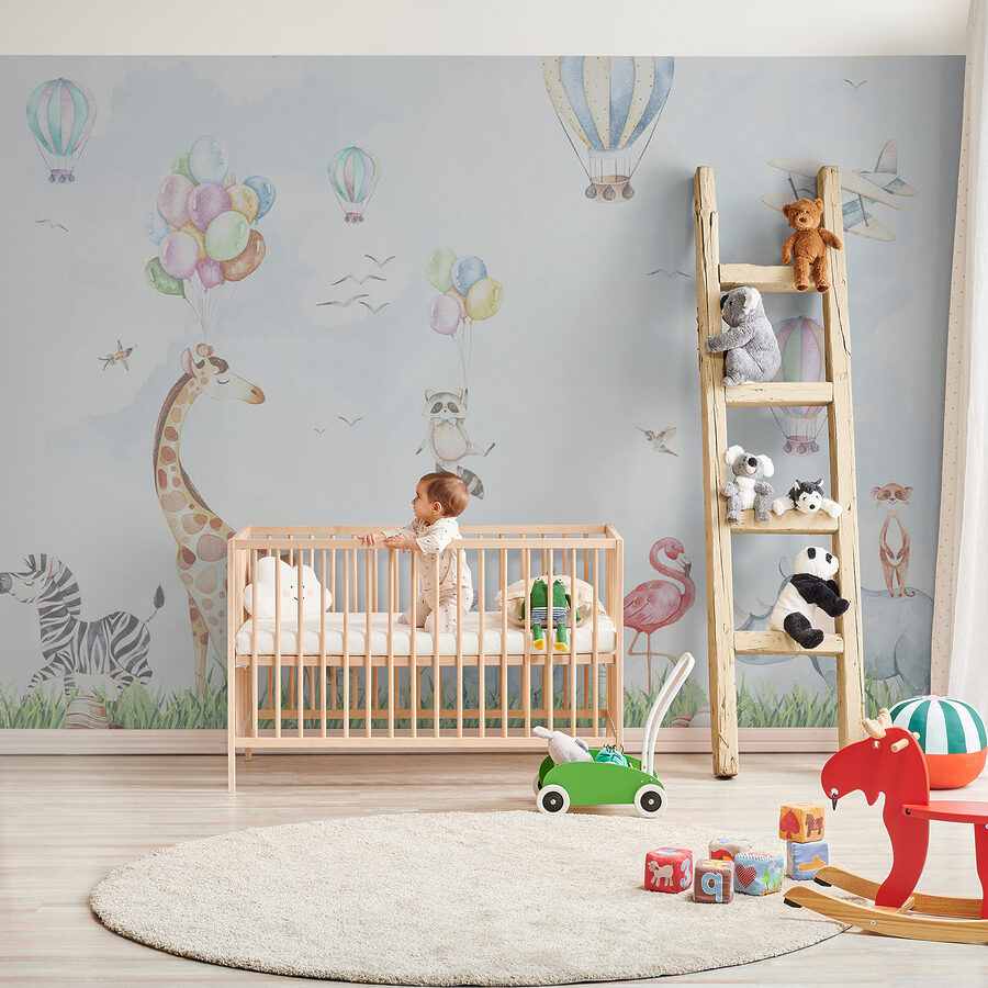 Vous cherchez à donner du charme à la chambre d’un enfant ? Jetez un coup d’œil à cette adorable peinture murale où un rhinocéros, un renard et leurs amis fantasques occupent le devant de la scène ! Imaginez un pays des merveilles serein en aquarelle, débordant de montgolfières, d’animaux enjoués et d’un ciel qui ressemble à une douce étreinte de rêve. Cette peinture murale n’est pas seulement jolie, elle est magique. Imaginez : votre enfant se réveille chaque matin dans un safari de sourires, avec une girafe tenant des ballons et un raton laveur prêt à explorer. C’est comme si un livre d’histoires prenait vie, invitant à toutes sortes d’aventures et de rires. Parfait pour stimuler la créativité et rendre l’heure du coucher un peu plus enchanteresse. Ajoutez cette délicieuse pièce à vos murs et regardez la joie s’épanouir !