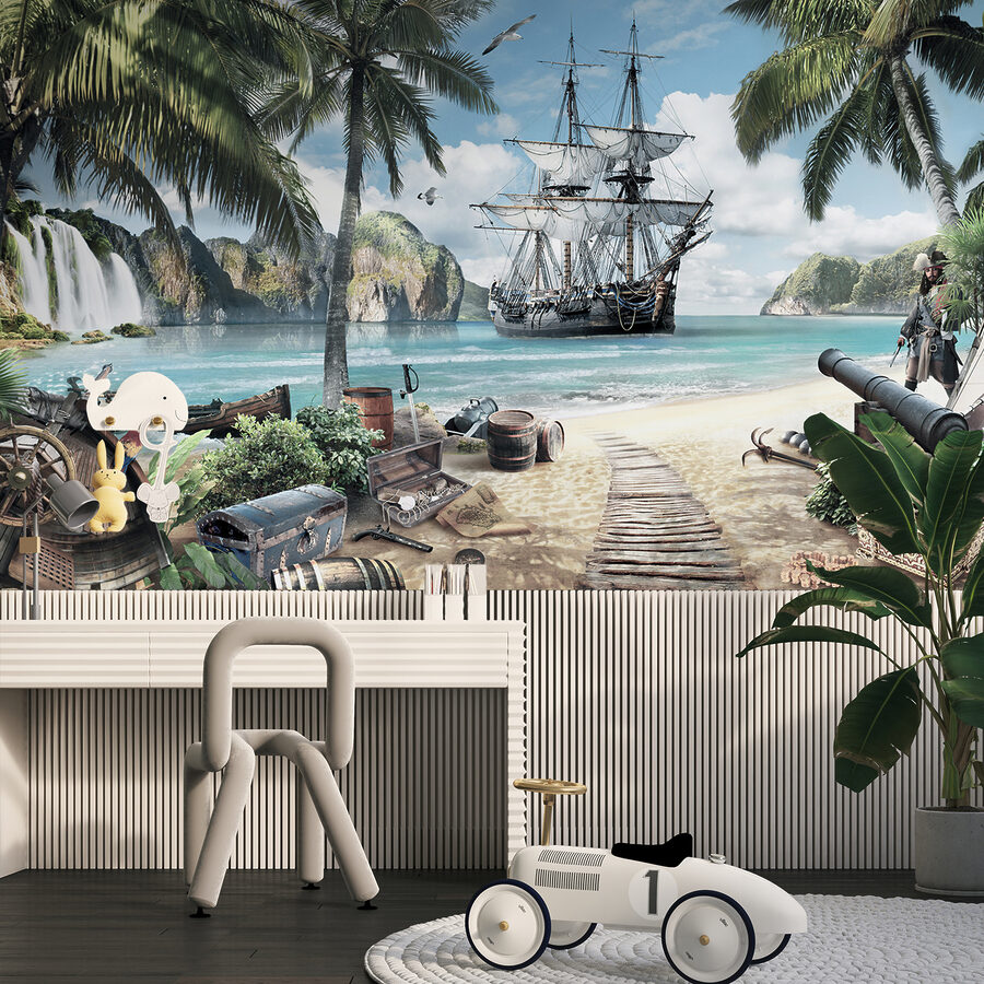 Transformez n’importe quel espace en une aventure de cape et d’épée avec cette peinture murale de bateau pirate ! Imaginez l’excitation de pénétrer dans une scène vibrante où les palmiers se balancent et les eaux turquoises vous appellent. Parfaite pour les enfants ou les jeunes de cœur, elle invite à des rêves de chasse au trésor et d’escapades sur la plage. Imaginez vos petits yeux écarquillés, préparant des voyages imaginaires à bord du bateau. Les détails ludiques, comme les tonneaux rouillés et le perroquet malicieux, suscitent la joie et le rire. Cette peinture murale est plus qu’un simple décor ; c’est un billet pour un monde fantaisiste où chaque regard apporte un sourire et un soupçon d’aventure.