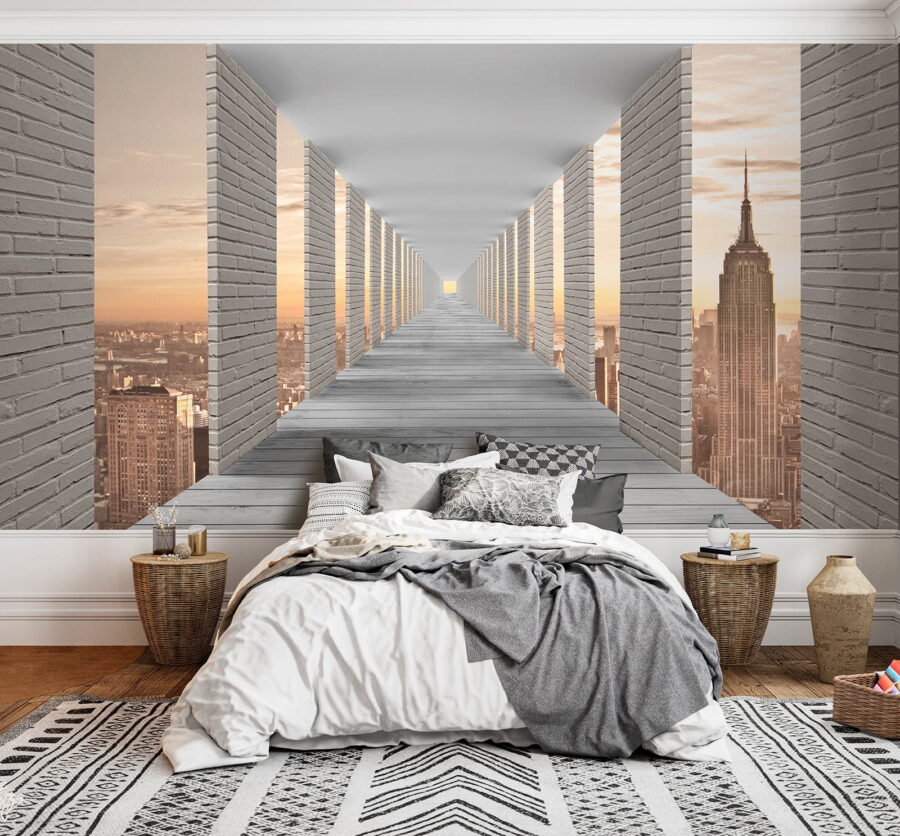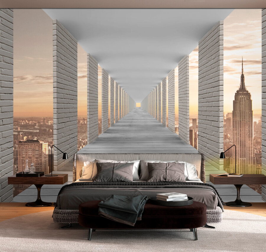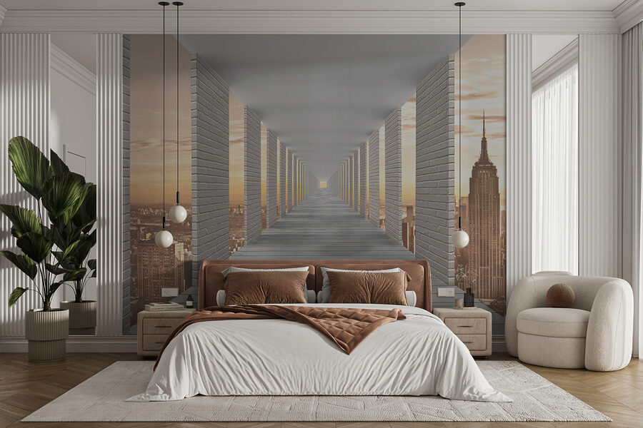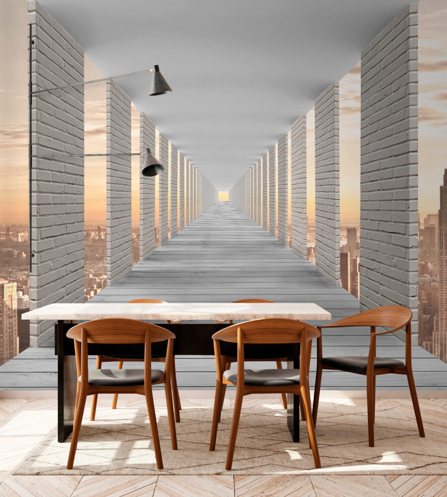 Imaginez cette peinture murale de rêve sur votre mur, où un couloir sans fin mène à un paysage urbain magique. Les lignes froides et nettes du grand bâtiment et ces fenêtres sans fin donnent à votre espace un sentiment de profondeur – presque comme si votre pièce avait grandi et atteint un tout nouveau niveau de sophistication. Les teintes chaudes du coucher de soleil à l’extérieur des “fenêtres” apportent une ambiance à la fois confortable et expansive, parfaite pour rêvasser ou prétendre que vous êtes dans un loft urbain haut de gamme. C’est comme si vos murs avaient découvert qu’ils pouvaient s’échapper sans vous laisser derrière eux ! Cette peinture murale transforme totalement un mur insipide en un sujet de conversation. L’ambiance de cette peinture murale est tellement… chic, vous voyez ? Et qui ne voudrait pas d’une pincée de cela dans son salon ou son bureau ?