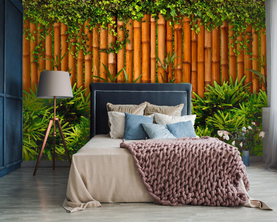 Transformez votre espace en une oasis tropicale avec cette ravissante peinture murale représentant une clôture en bambou drapée de plantes vertes luxuriantes. C’est comme si vous apportiez un morceau de nature à l’intérieur, sans les insectes et l’humidité. Imaginez que vous sirotez votre café du matin ou que vous vous détendez après une longue journée, tout en vous sentant entouré d’une ambiance de jardin apaisante. Les couleurs riches et les éléments naturels créent une toile de fond apaisante qui convient parfaitement à n’importe quelle pièce. Que ce soit dans le salon, la chambre à coucher ou même dans un coin confortable, cette peinture murale invite à un sentiment de chaleur et de sérénité. Qui a besoin de vacances quand on peut avoir ça ?
