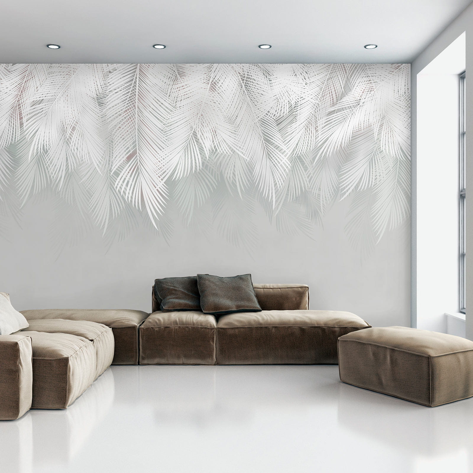 1 avis pour Papier peint Motif de feuilles blanches sur fond gris
